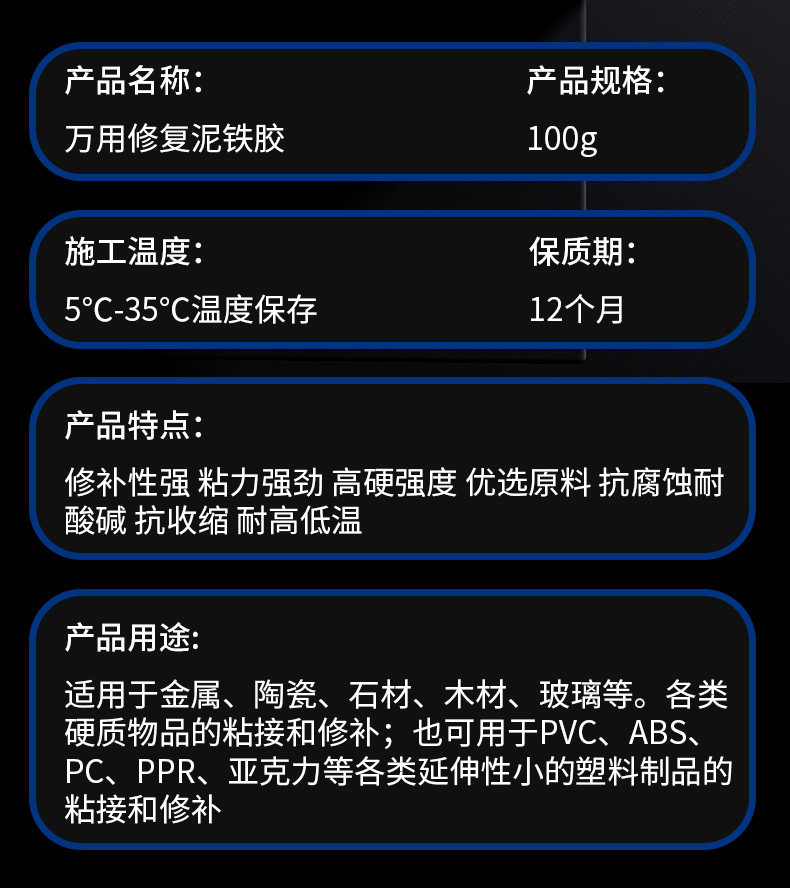 | Color Classification | Mud Iron Glue[White 100g](A+B Needs to Be Mixed Evenly before Use),Mud Iron Glue[White 200g](A+B Needs to Be Mixed Evenly before Use),Mud Iron Glue[Gray 100g](A+B Needs to Be Mixed Evenly before Use),Mud Iron Glue[Gray 200g](A+B Needs to Be Mixed Evenly before Use) |