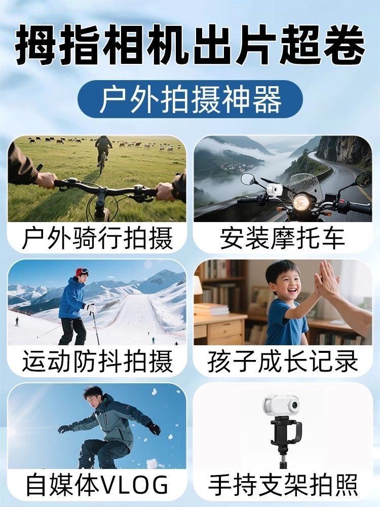 Sports Thumb Camera with Magnetic Mount, Anti-Shake Action Camera for Cycling, High-Definition Video Recording, Vlog Travel Thumb Camera