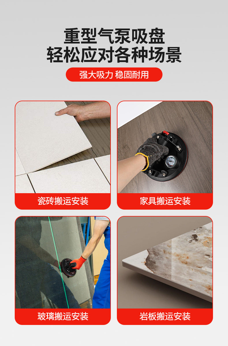 Vacuum Pump Suction Cup for Large Panels, Heavy-Duty Manual Suction Tool for Floor Tiles, Glass Suction Tool