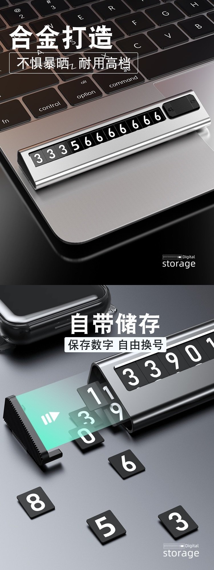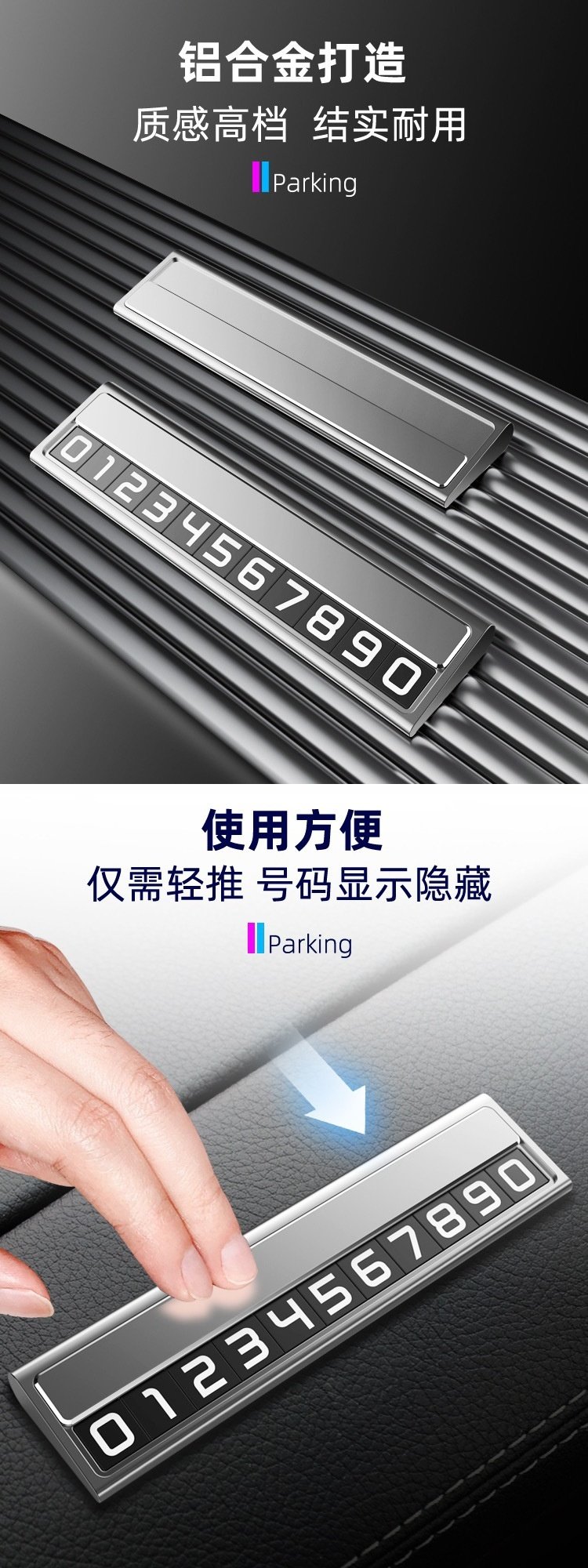 Car Temporary Parking Number Plate, High-End Alloy Car-Mounted Phone Number Holder, Car Moving and Parking Phone Number Plate