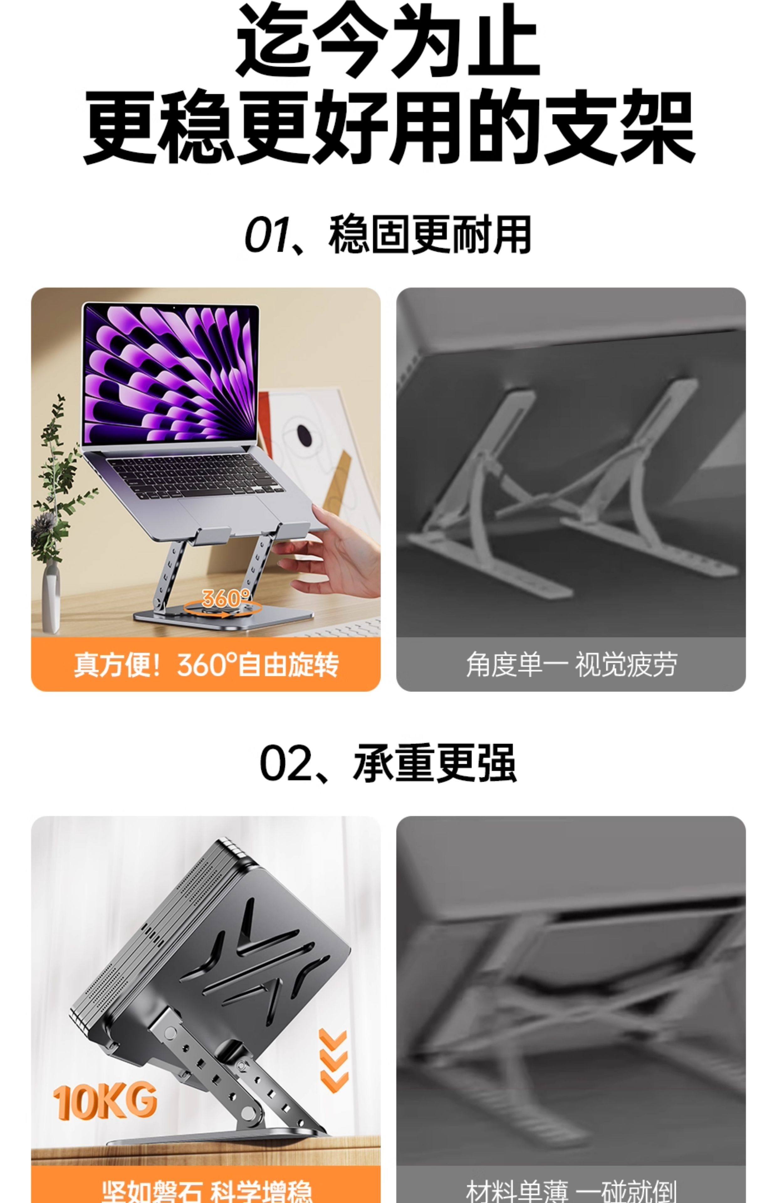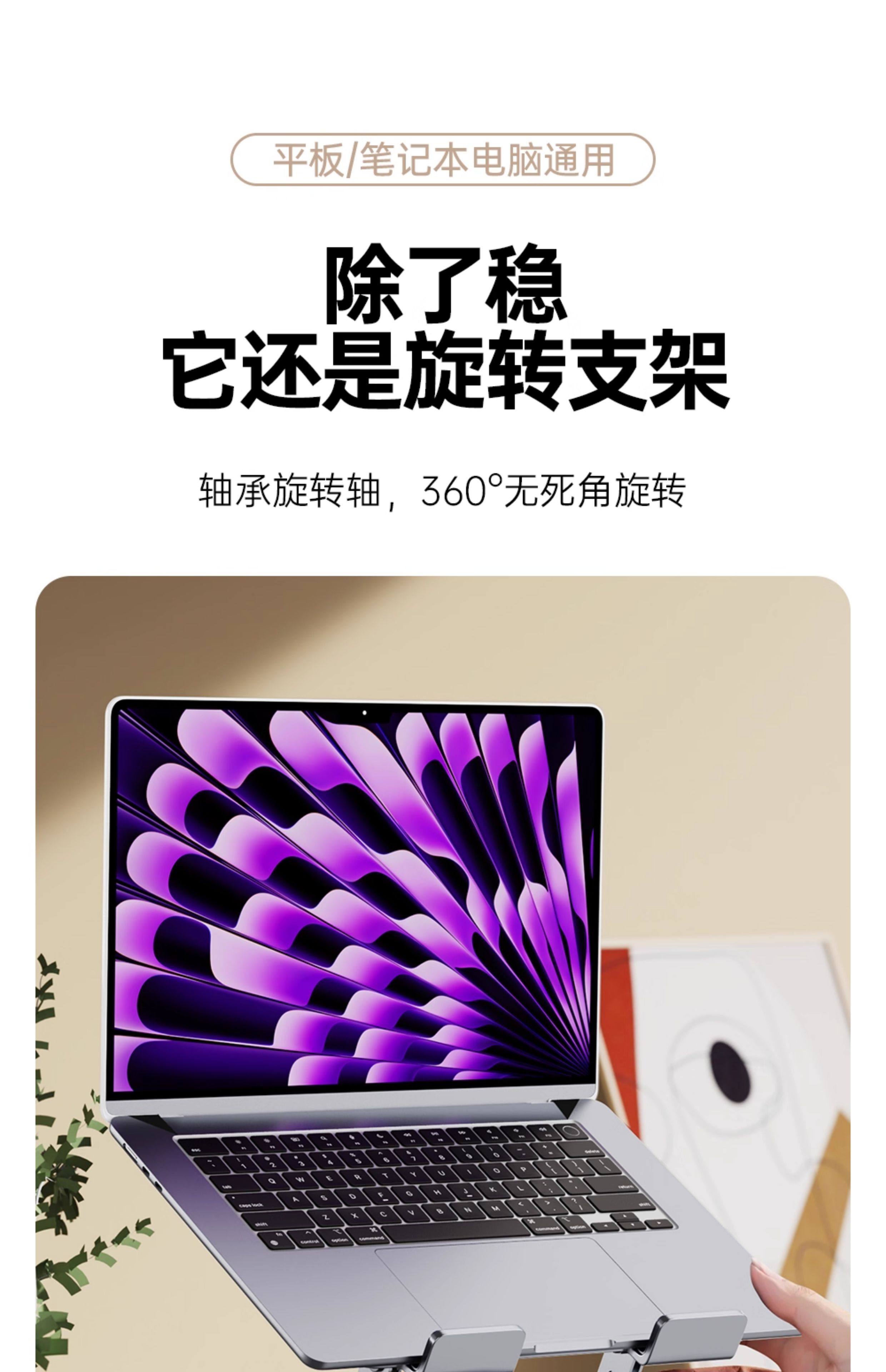 Laptop Cooling-Enhancing Aluminum Alloy Portable Adjustable Tablet Drawing Screen Folding Rotating Support Stand