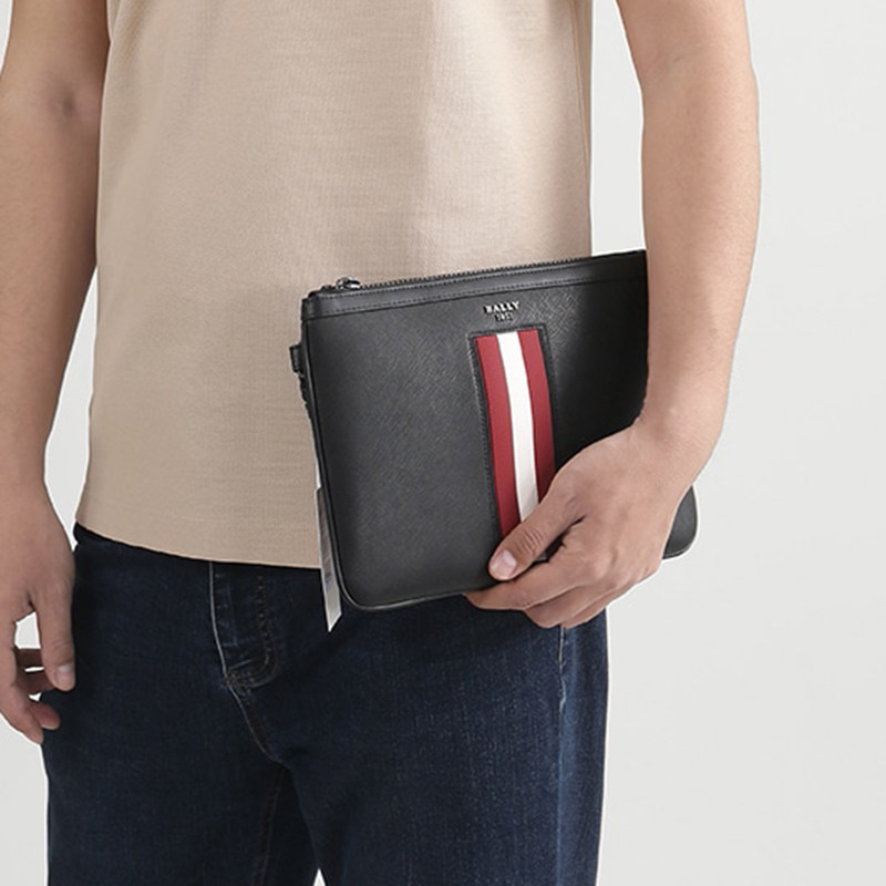 Bally Men's Cow Leather Clutch Bag Silver Mall Department Store 300095