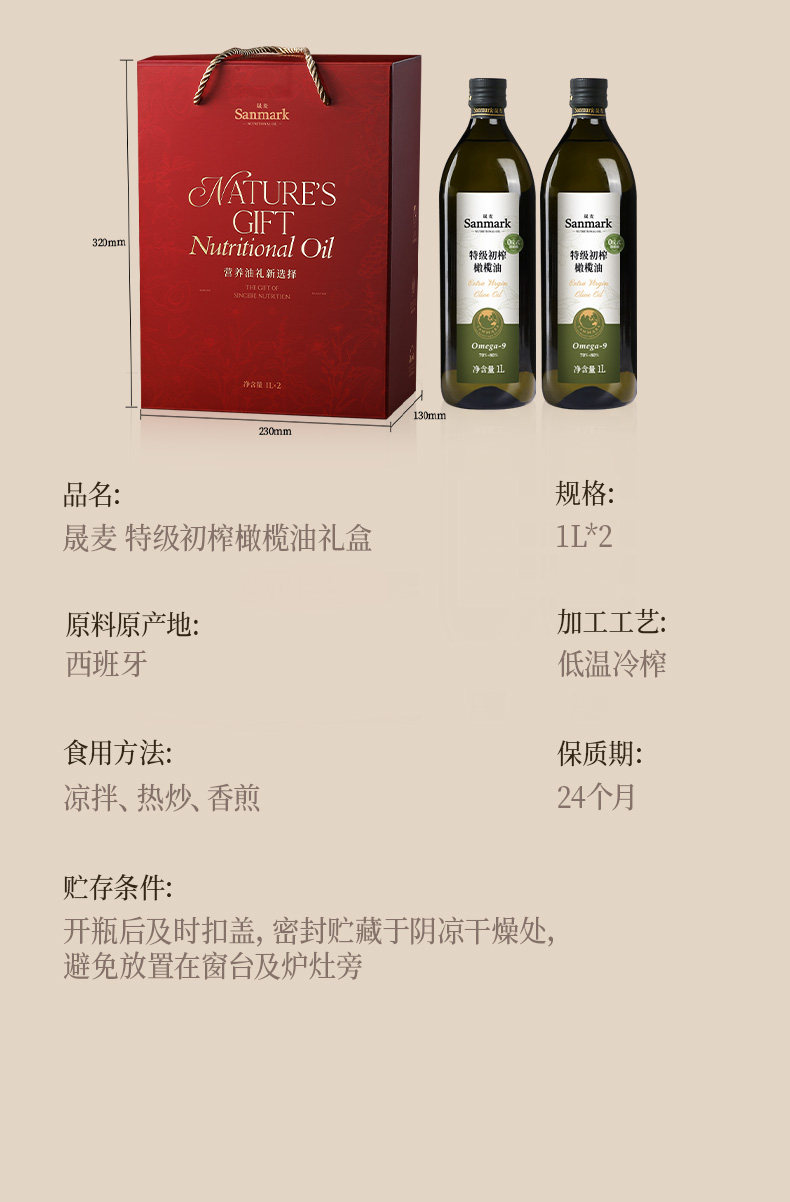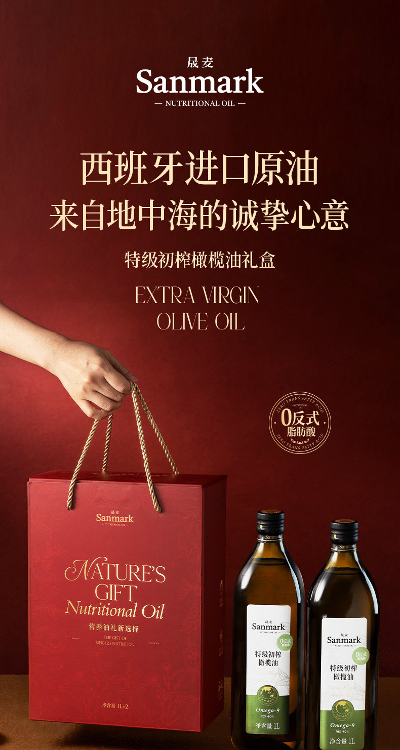 Shengmai New Year Gift Box Extra Virgin Olive Oil Spanish Imported 1L*2 Household Group Purchase Gift