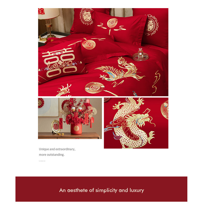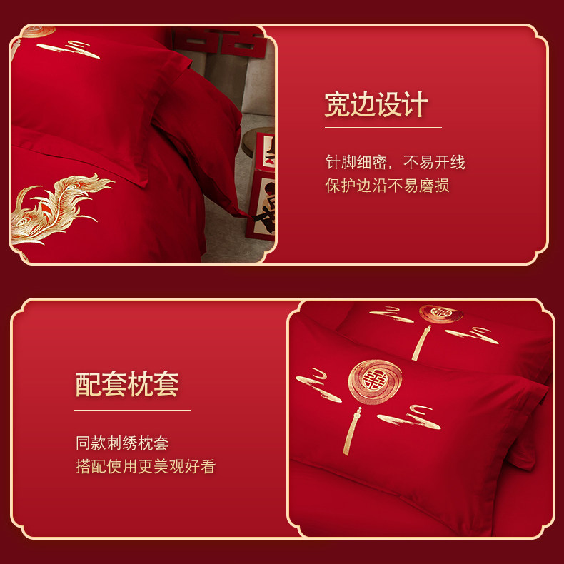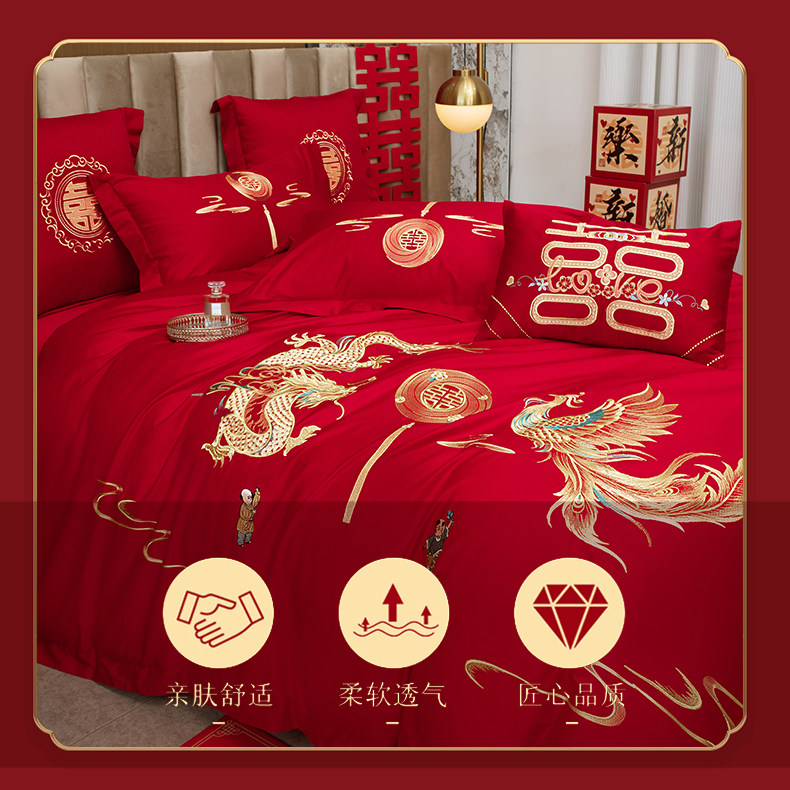All-Cotton Chinese-Style Wedding Four-Piece Set Festive Wedding Bedding 100% Pure Cotton Red Bed Sheet Duvet Cover for Newlyweds