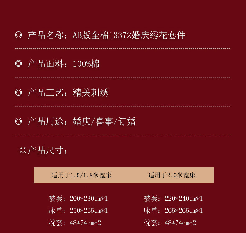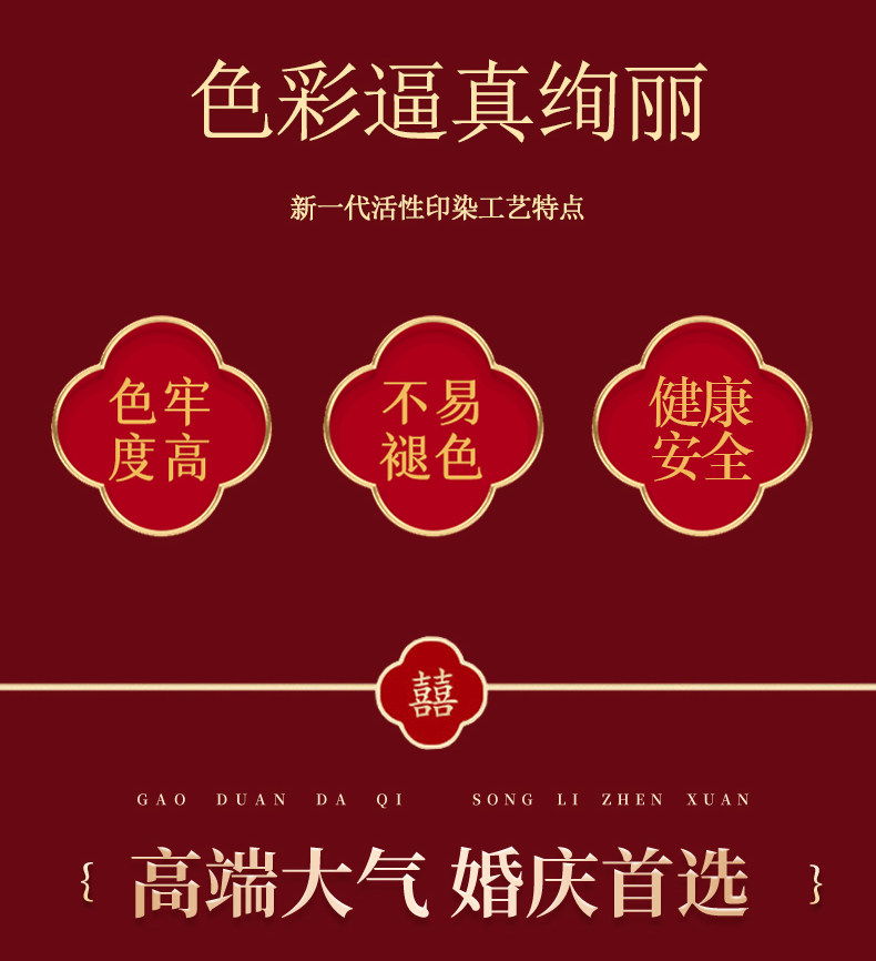 | Color Classification | Dragon and Phoenix Bring Children [High Count, High Density, Soft and Delicate],Bai Fu Is Long-Lasting [High Count, High Density, Soft and Delicate],Dragon and Phoenix Happy Events [High Count, High Density, Soft and Delicate],Oriental Wedding [High Count, High Density, Soft and Delicate],Blessings Are Passed down [High Count, High Density, Soft and Delicate],Huaying Pavilion [High Count, High Density, Soft and Delicate],Rose Love Language [High Count, High Density, Soft and Delicate],Alluring Love [High Thread Count, High Density, Soft and Delicate],Ruyi Dragon and Phoenix [High Count, High Density, Soft and Delicate],My Family Is Happy [High Count, High Density, Soft and Delicate],Happy Marriage [High Count, High Density, Soft and Delicate],Heartbeat Love [High Count, High Density, Soft and Delicate],Bai Zi Jiayuan [High Count, High Density, Soft and Delicate],Splendid Fragrance [High Count, High Density, Soft and Delicate],Dragon and Phoenix Love (True Color) [High Count, High Density, Soft and Delicate],Dragon and Phoenix Ruyi [High Count, High Density, Soft and Delicate],Wedding Ceremony in a Prosperous Era [High Count, High Density, Soft and Delicate],Welcome and Accompany You [High Count, High Density, Soft and Delicate],Heartbeat [High Count, High Density, Soft and Delicate],Happiness and Happiness [High Count, High Density, Soft and Delicate],Legendary Dragon and Phoenix [High Count, High Density, Soft and Delicate],Happy and Happy [High Count, High Density, Soft and Delicate],Two People Are Happy Together [High Count, High Density, Soft and Delicate],Dragon and Phoenix Fly Together [High Count, High Density, Soft and Delicate],Full of Joy (True Color) [High Count, High Density, Soft and Delicate],Forever【High Count and High Density, Soft and Delicate】,Sauvignon Blanc [High Count, High Density, Soft and Delicate],Full of Descendants [High Count, High Density, Soft and Delicate],Dragon and Phoenix Sweet Words (Natural Color) [High Count, High Density, Soft and Delicate],A Match Made in Heaven (New) [High Count, High Density, Soft and Delicate],Full of Joy (New) [High Count, High Density, Soft and Delicate],Beloved of the Country [High Count, High Density, Soft and Delicate] |