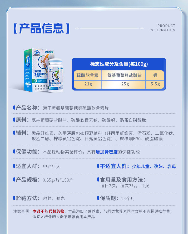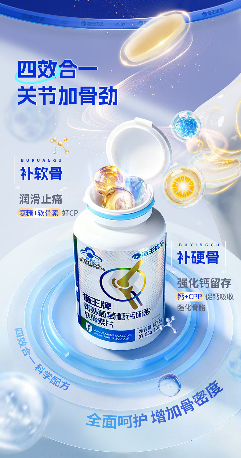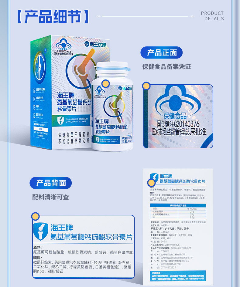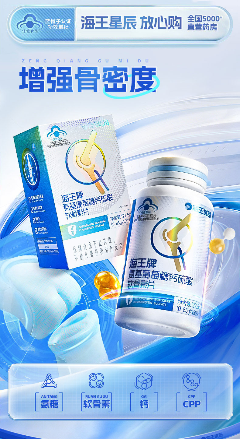 Haiwangyou Brand Glucosamine Chondroitin Tablets Enhance Bone Density, Relieve Joint Pain in Middle-Aged and Elderly Adults, and Protect Joints