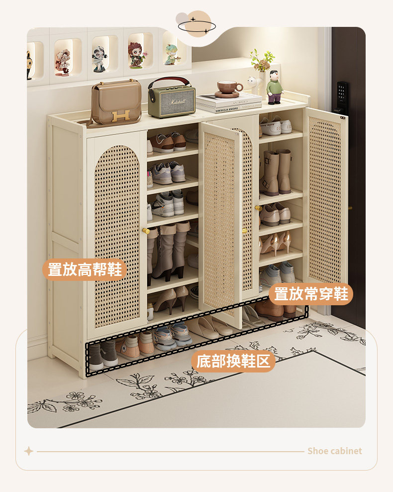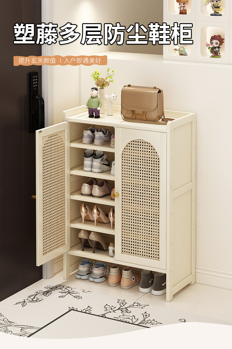 Shoe Rack Storage Solution for Small Narrow Entryways, Space-Saving Cream-Style Shoe Cabinet for Home Use, Aesthetically Pleasing Multi-Layer Storage Shelf
