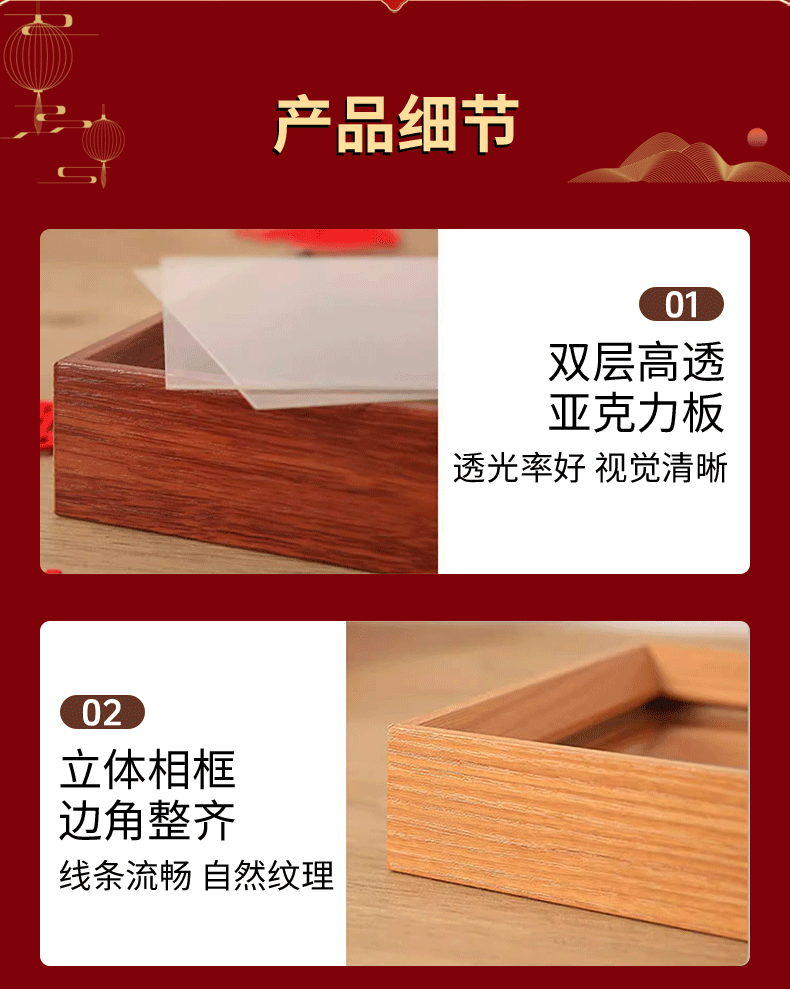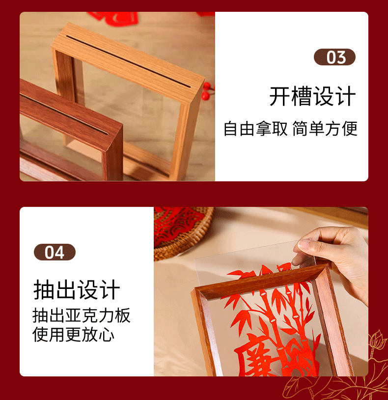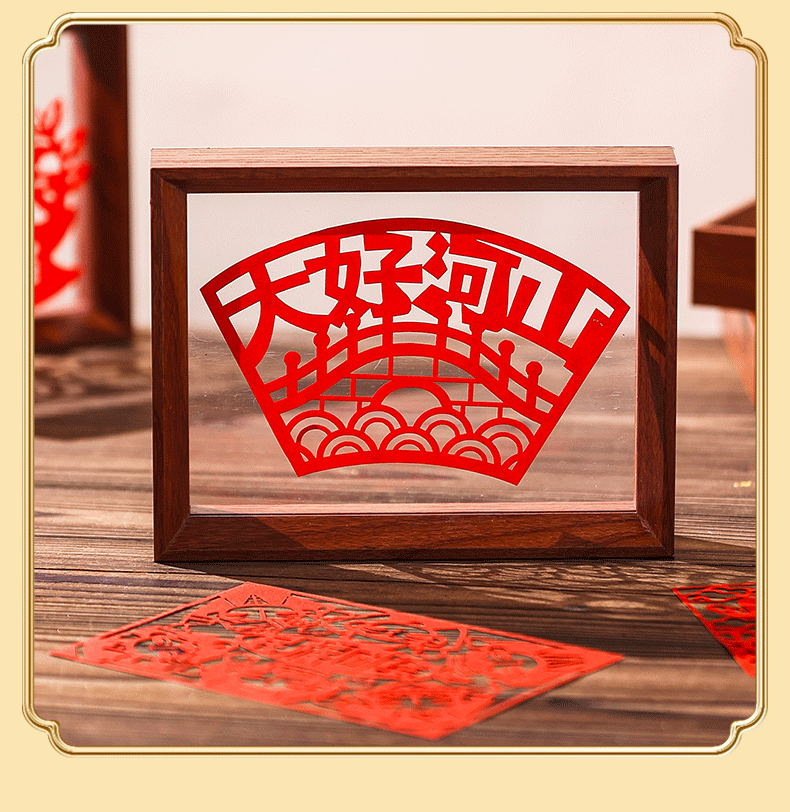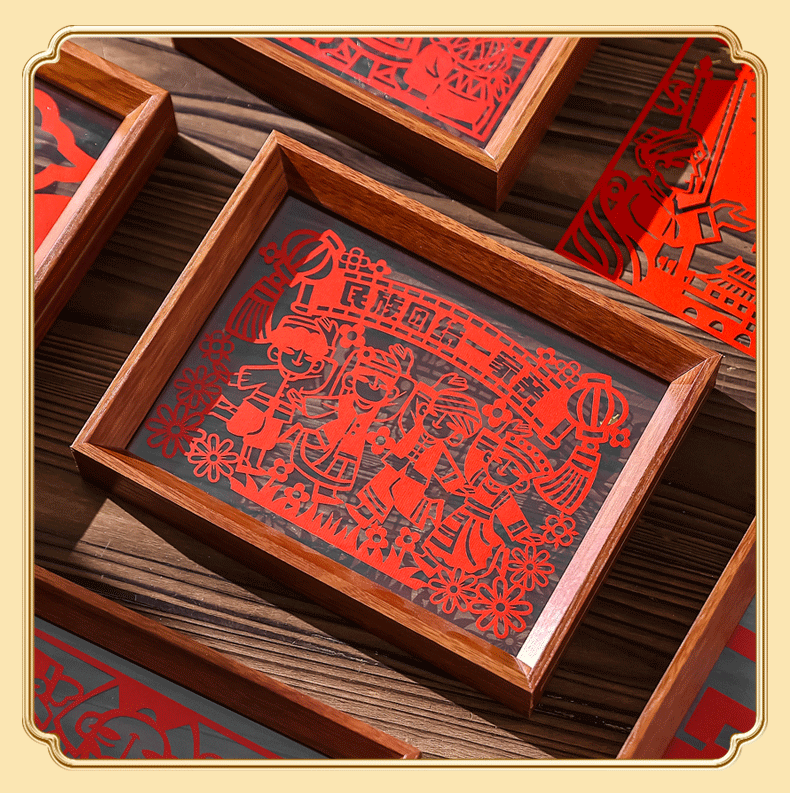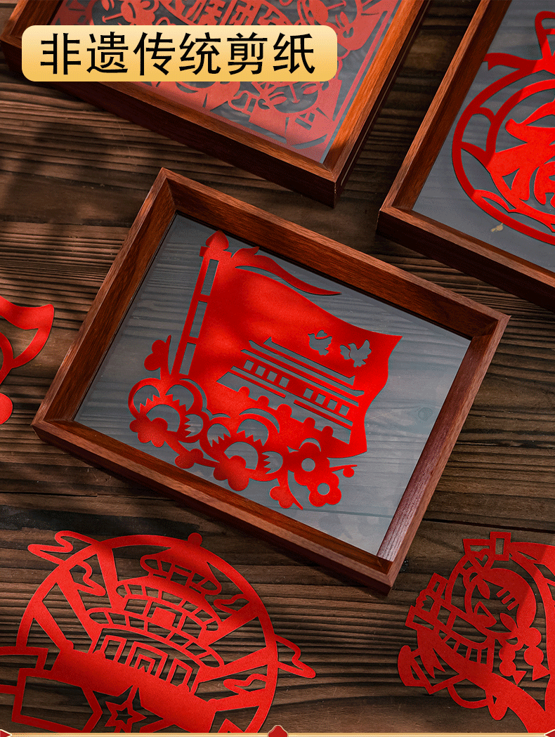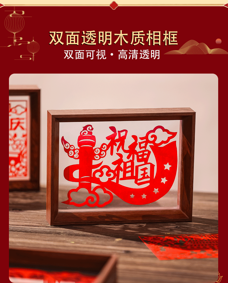 National Day Intangible Cultural Heritage Paper-Cut Finished Product Double-Sided Transparent Photo Frame Chinese-Style Display Stand Patriotic Artwork Specimen Display Clip Frame