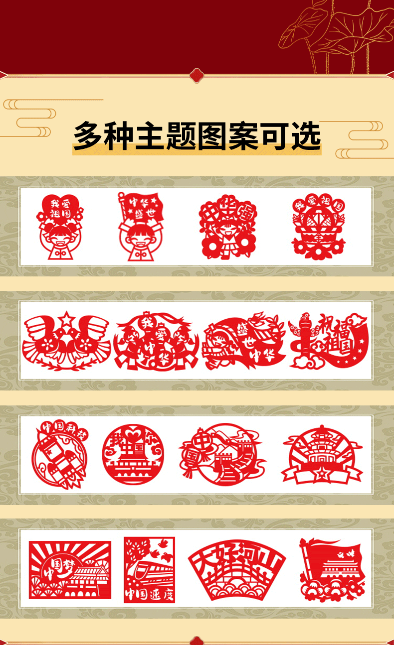| Color Classification | Bless Our Motherland[Picture Frame + Finished Paper-Cut],Happy National Day[Picture Frame + Finished Paper-Cut],I Love My Motherland - Double Pigeon[Picture Frame + Finished Paper-Cut],Great Mountains and Rivers[Picture Frame + Finished Paper-Cut],Abundant Harvest[Picture Frame + Finished Paper-Cut],Temple of Heaven[Picture Frame + Finished Paper-Cut],Chinese Technology[Picture Frame + Finished Paper-Cut],I Love China[Picture Frame + Finished Paper-Cut],Great Wall of China[Picture Frame + Finished Paper-Cut],Pomegranate Seeds Are a Family[Picture Frame + Finished Paper-Cut],Blessings and Songs to the Motherland[Picture Frame + Finished Paper-Cut],Ethnic Unity Is Like a Family[Picture Frame + Finished Paper-Cut],The Heart of National Unity Is Connected[Picture Frame + Finished Paper-Cut],Great Unity of All Ethnic Groups[Picture Frame + Finished Paper-Cut] |