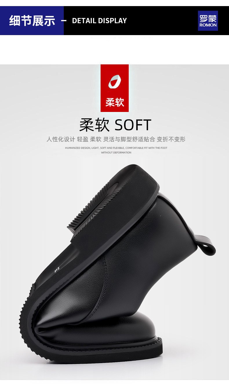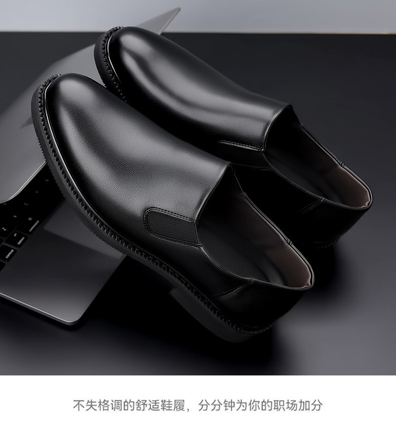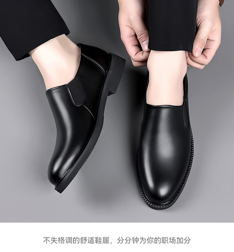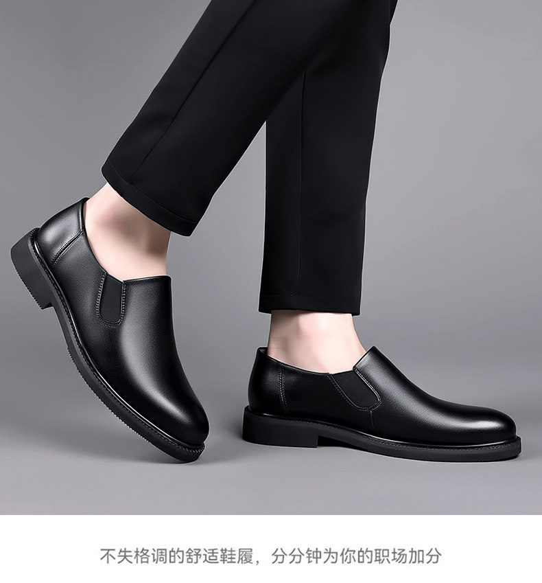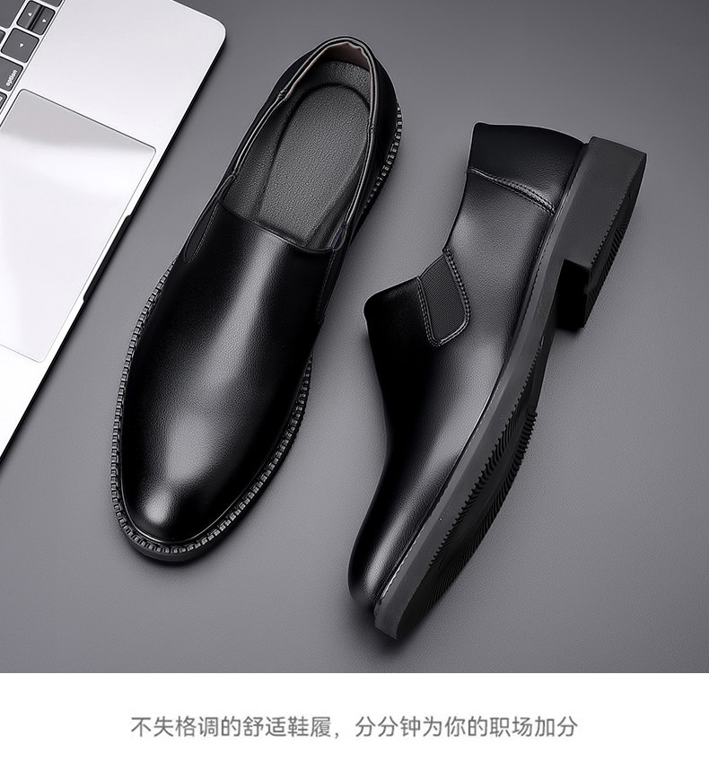 Romon Men's Leather Slip-On Loafers, Young Style, Autumn Formal Business High-End Leather Shoes Rm