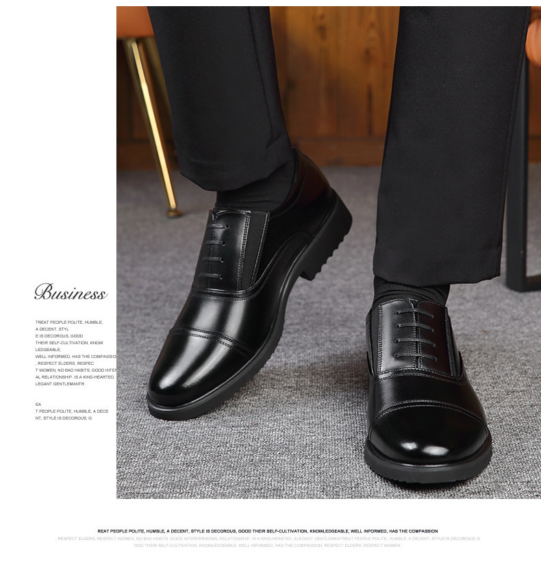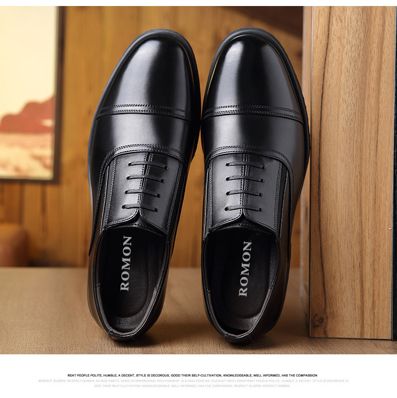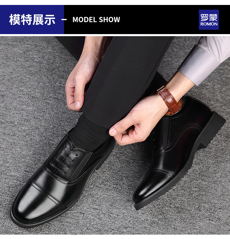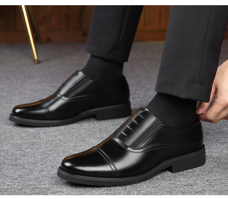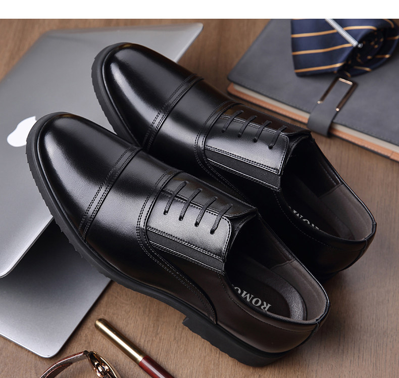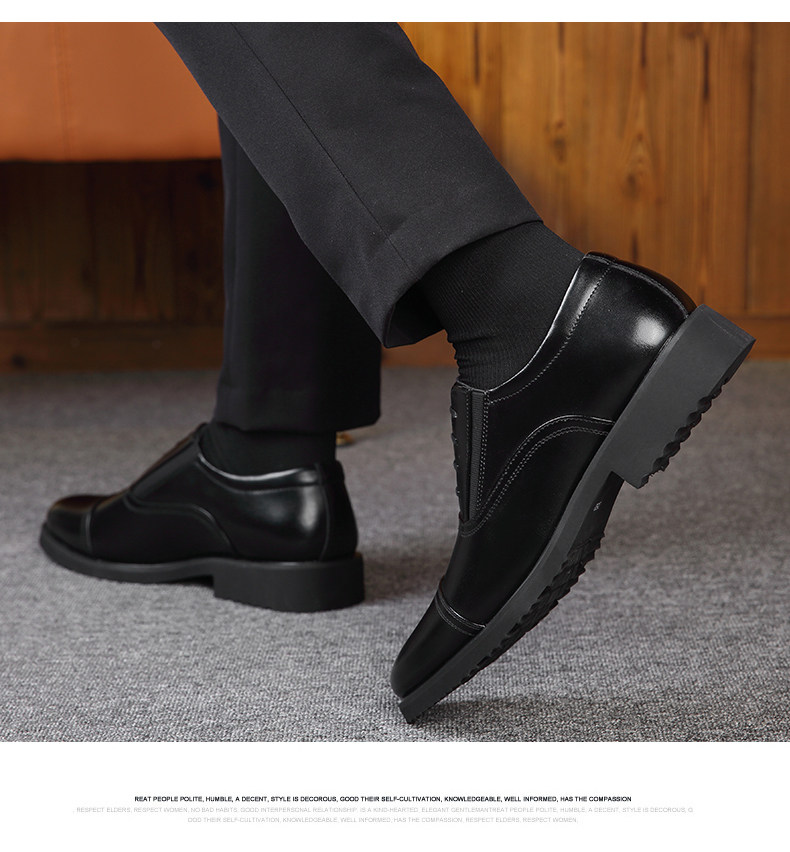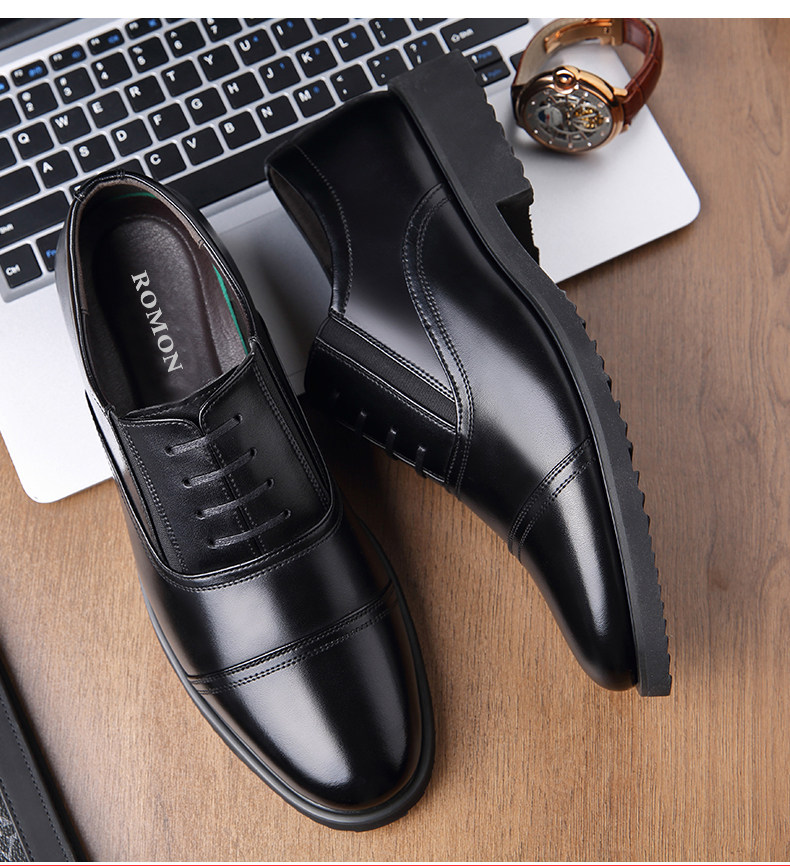Romon Men's Leather Shoes, Autumn Elastic Slip-On Oxford Shoes, Formal Business Men's Three-Joint Wedding Shoes Rm