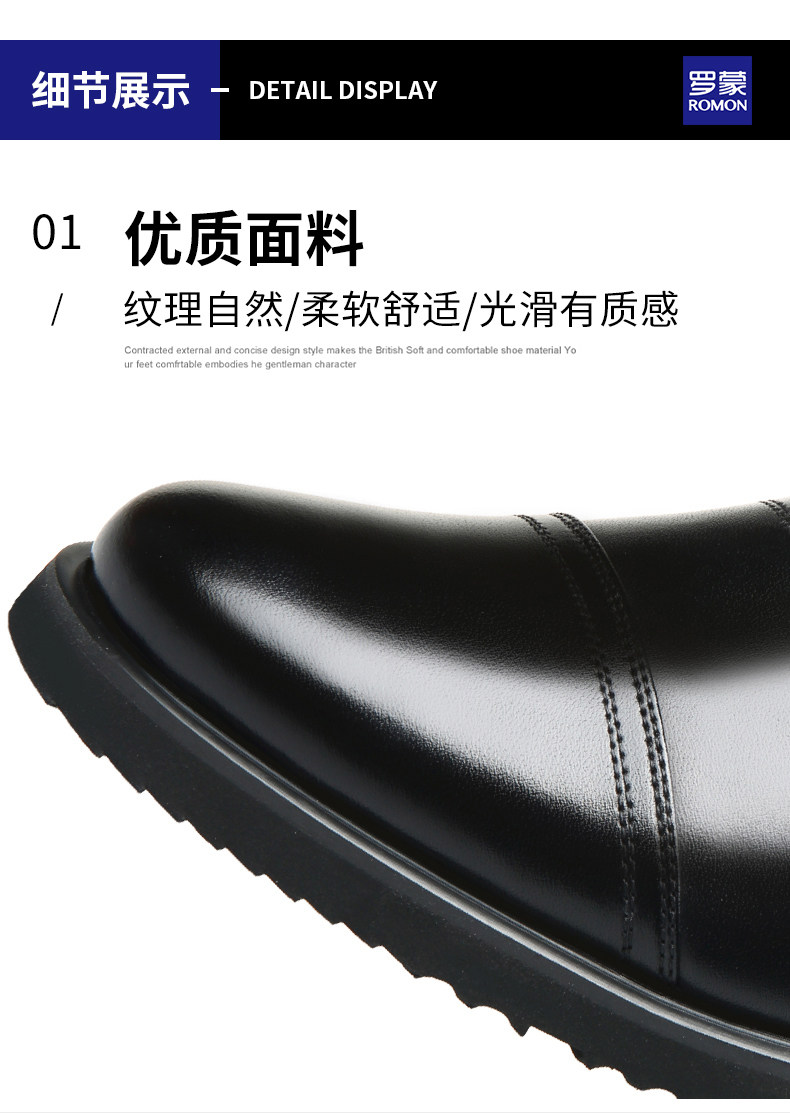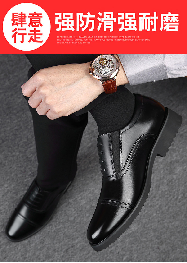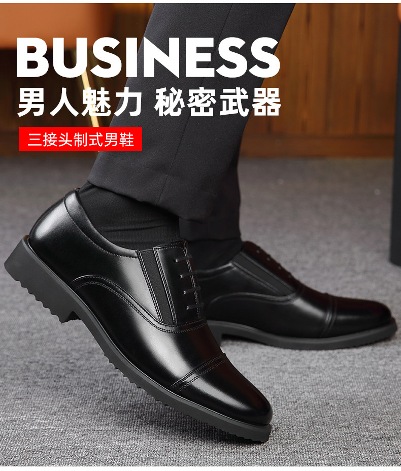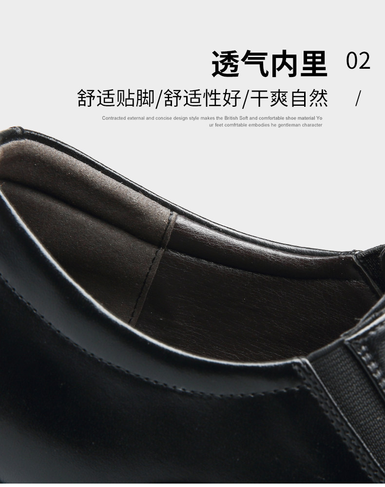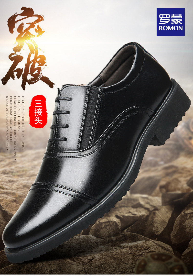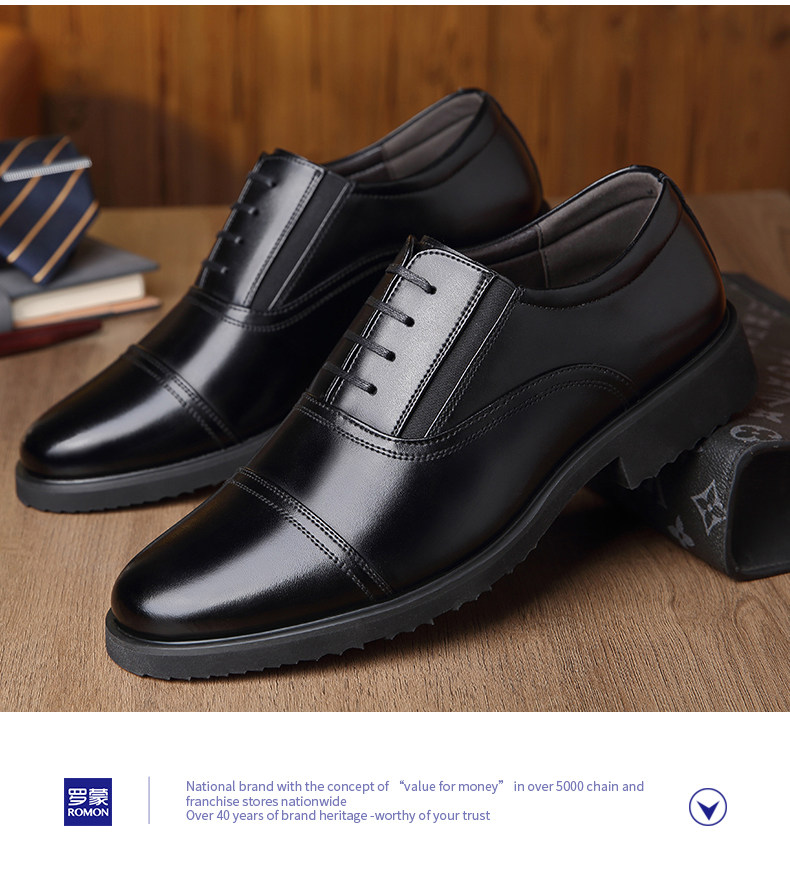 Romon Men's Leather Shoes, Autumn Elastic Slip-On Oxford Shoes, Formal Business Men's Three-Joint Wedding Shoes Rm