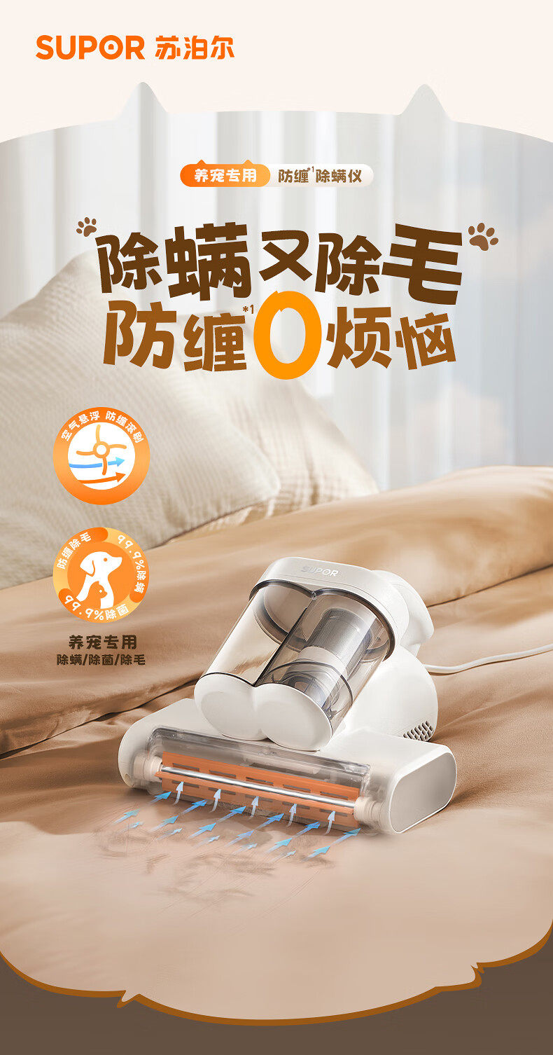 [National Supplement] Supor Household Mite Removal Device Bed Vacuum Cleaner Mite Removal Magic Tool Uv Sterilizer with Strong Suction