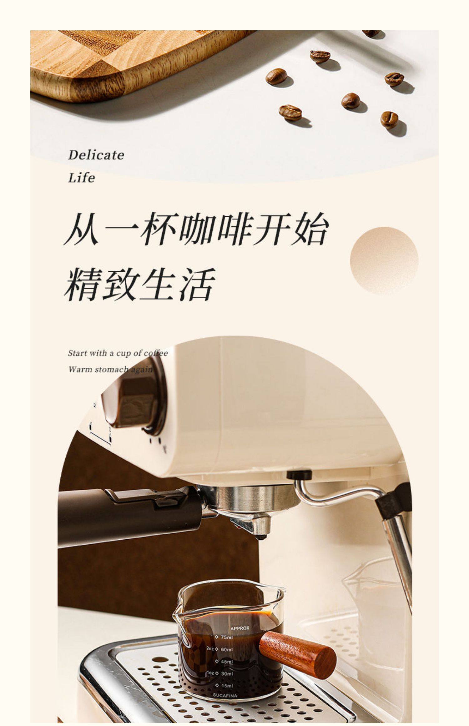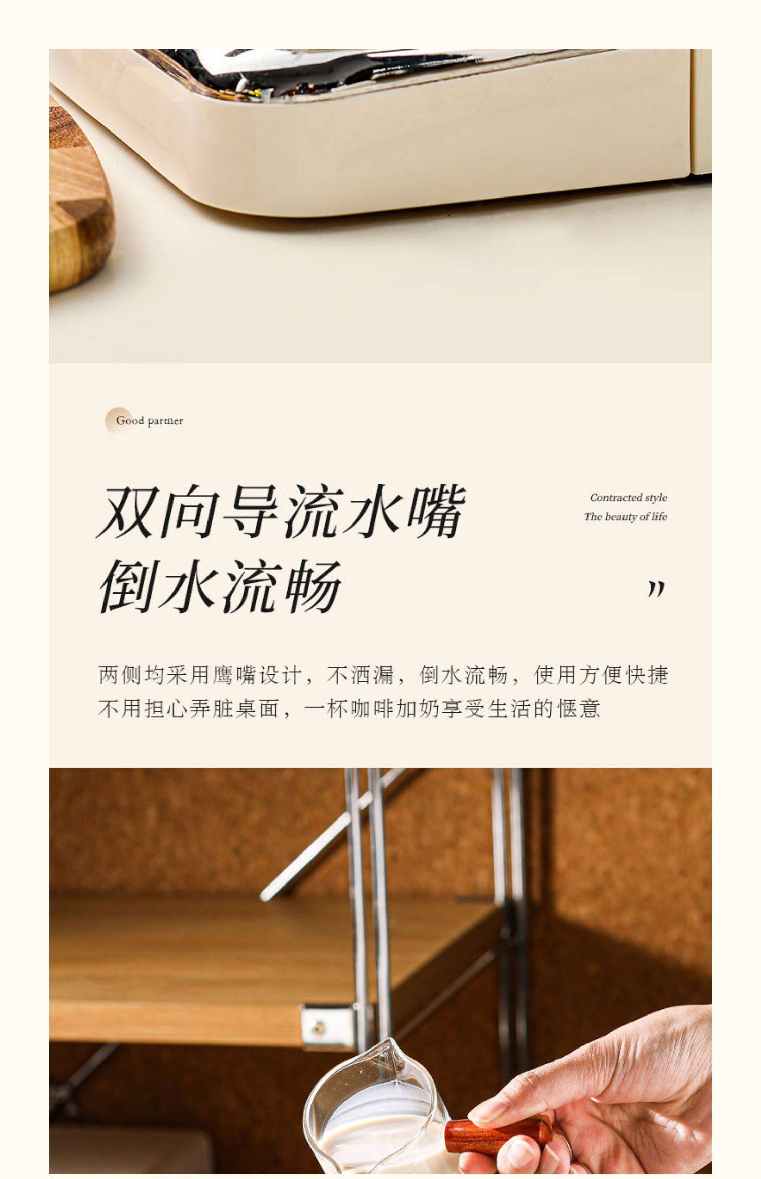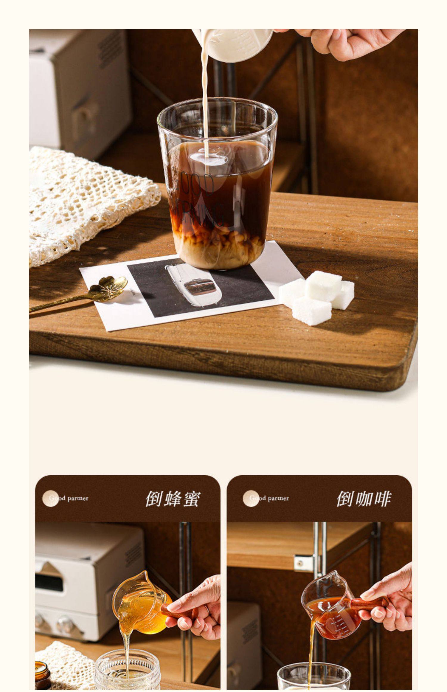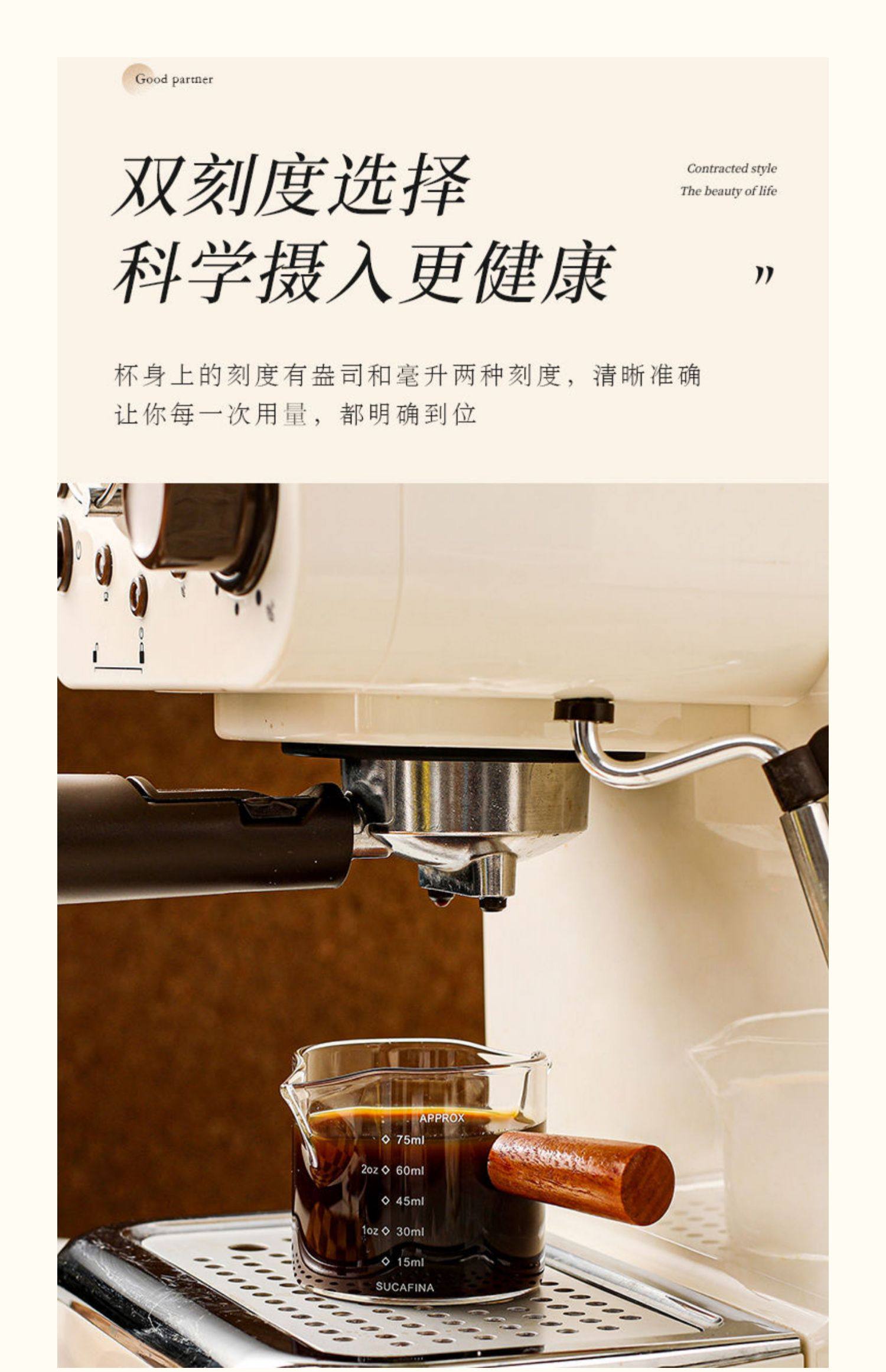 Shot Glass Double Spout Ounce Cup Glass Milk Jug Wooden Handle Measuring Cup with Scale Milk Jug Double Spout Espresso Ounce