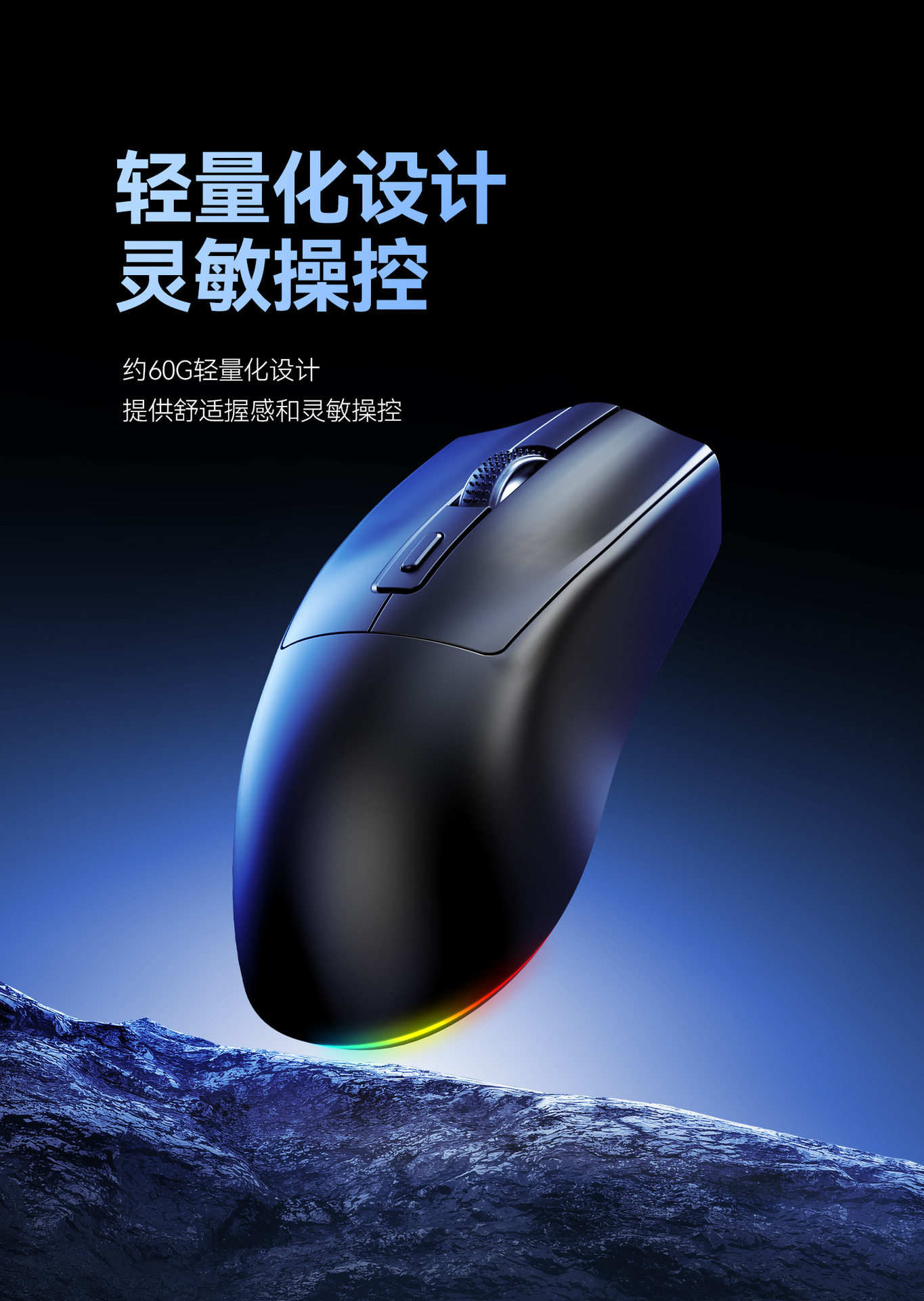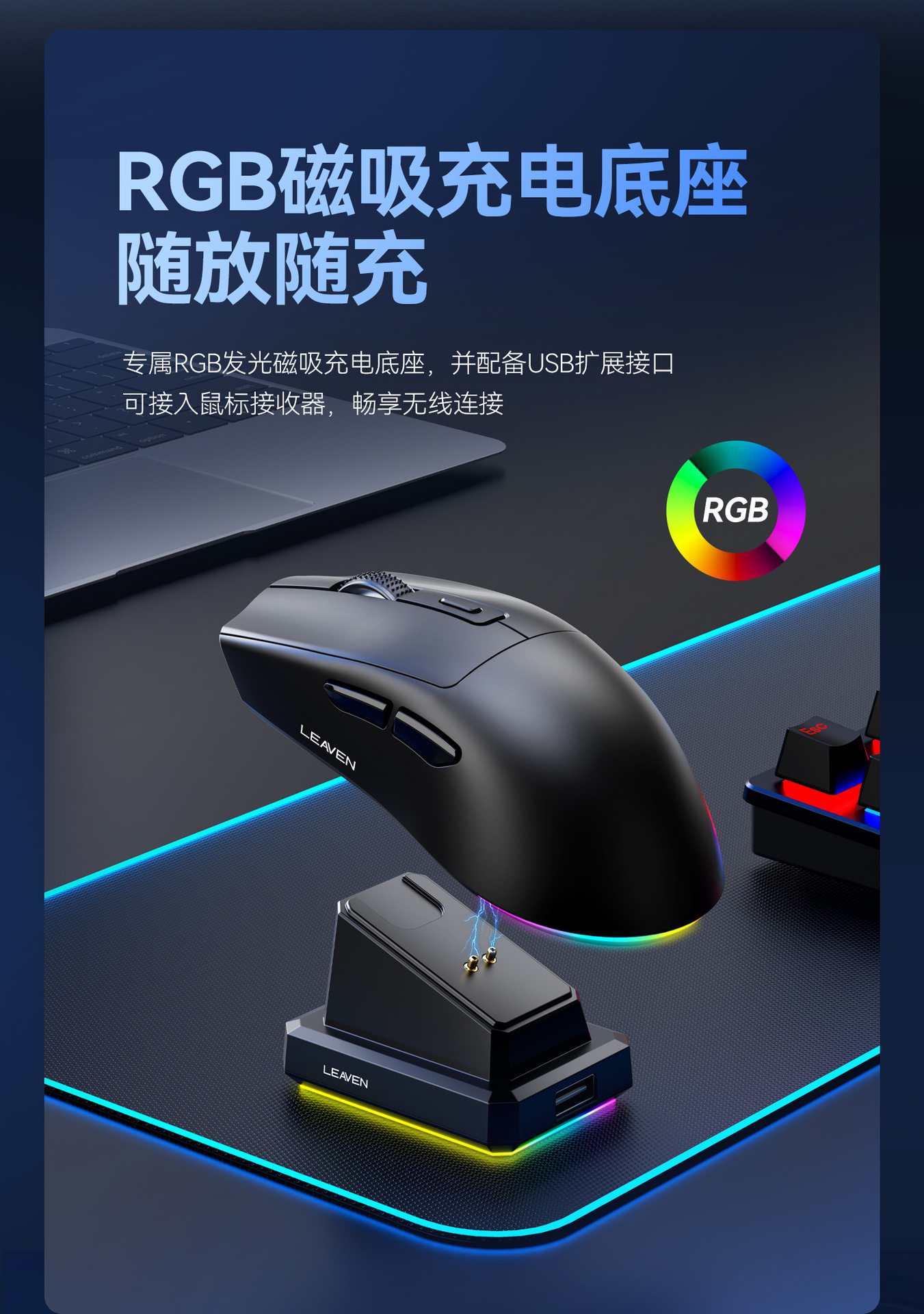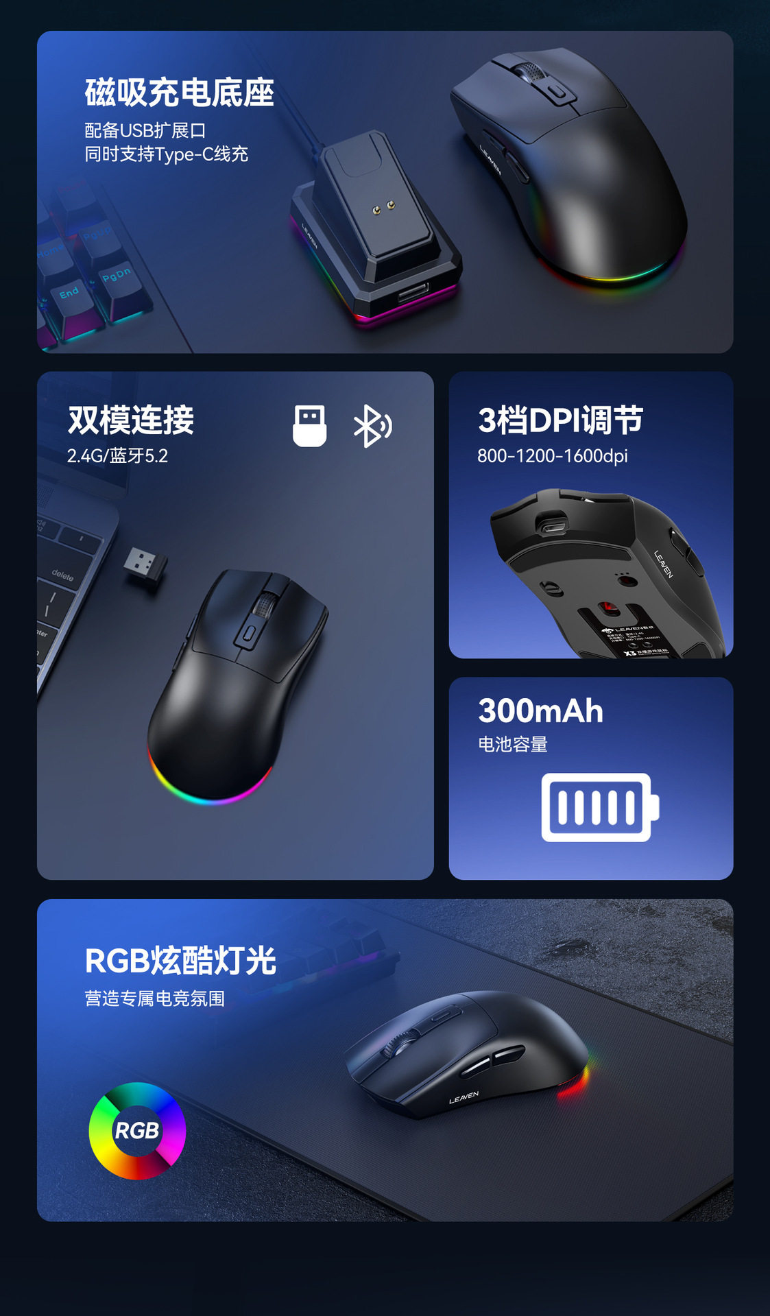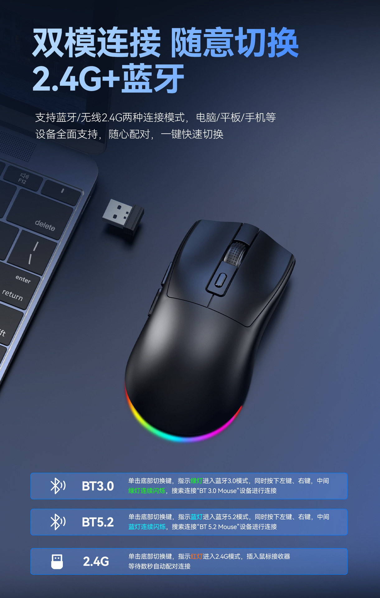 Bluetooth Wireless Mouse, Three-Mode Gaming Laptop, Lightweight Ergonomic Base, Wireless Charging, Rechargeable