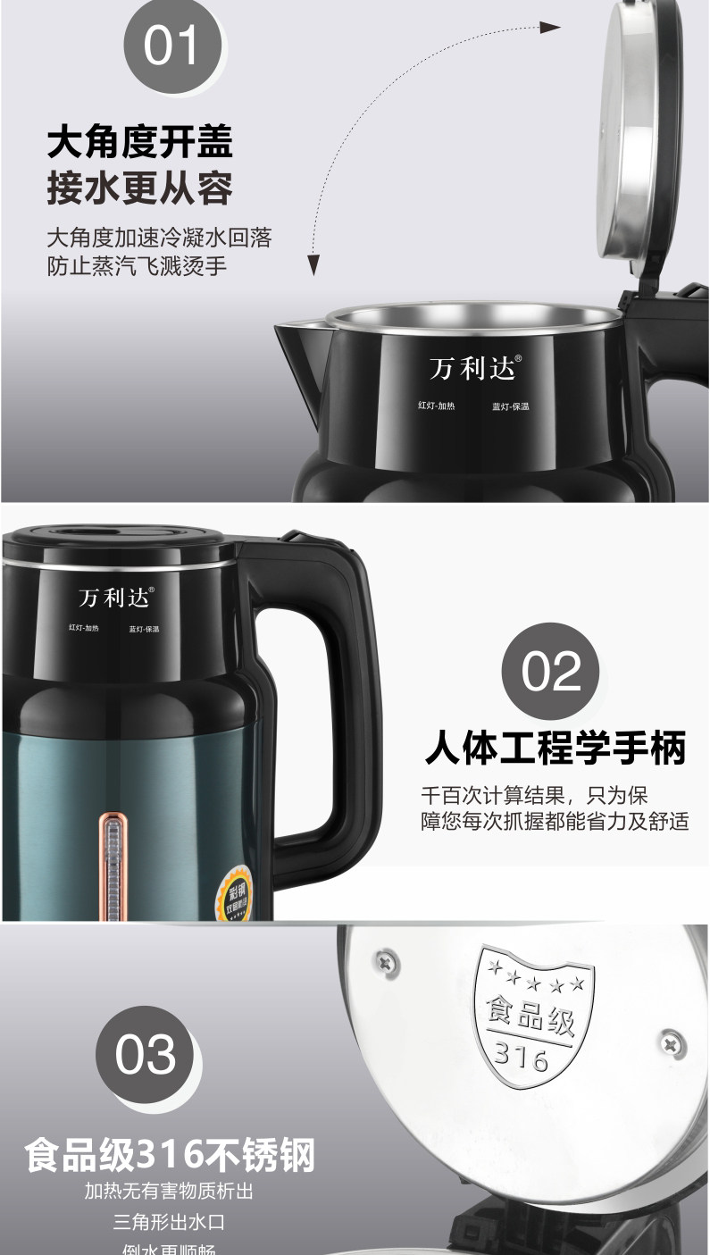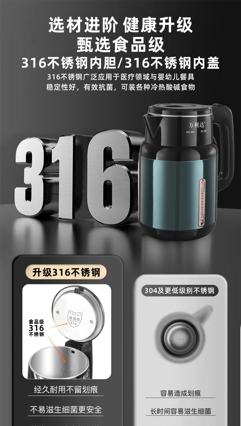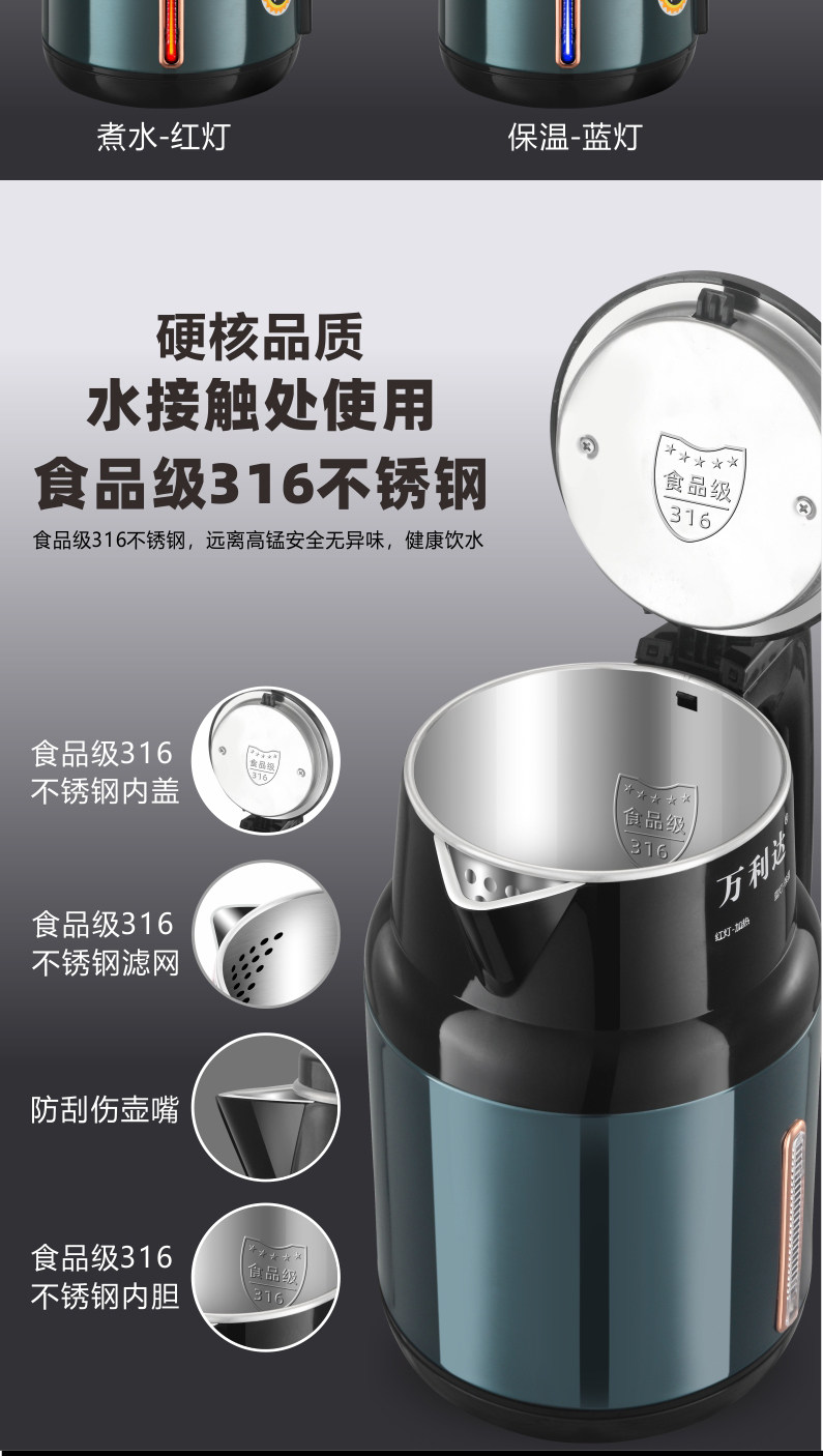 Wanlida Kettle 2025 New Model Household Insulated Integrated Constant Temperature Kettle 316 Stainless Steel Electric Kettle