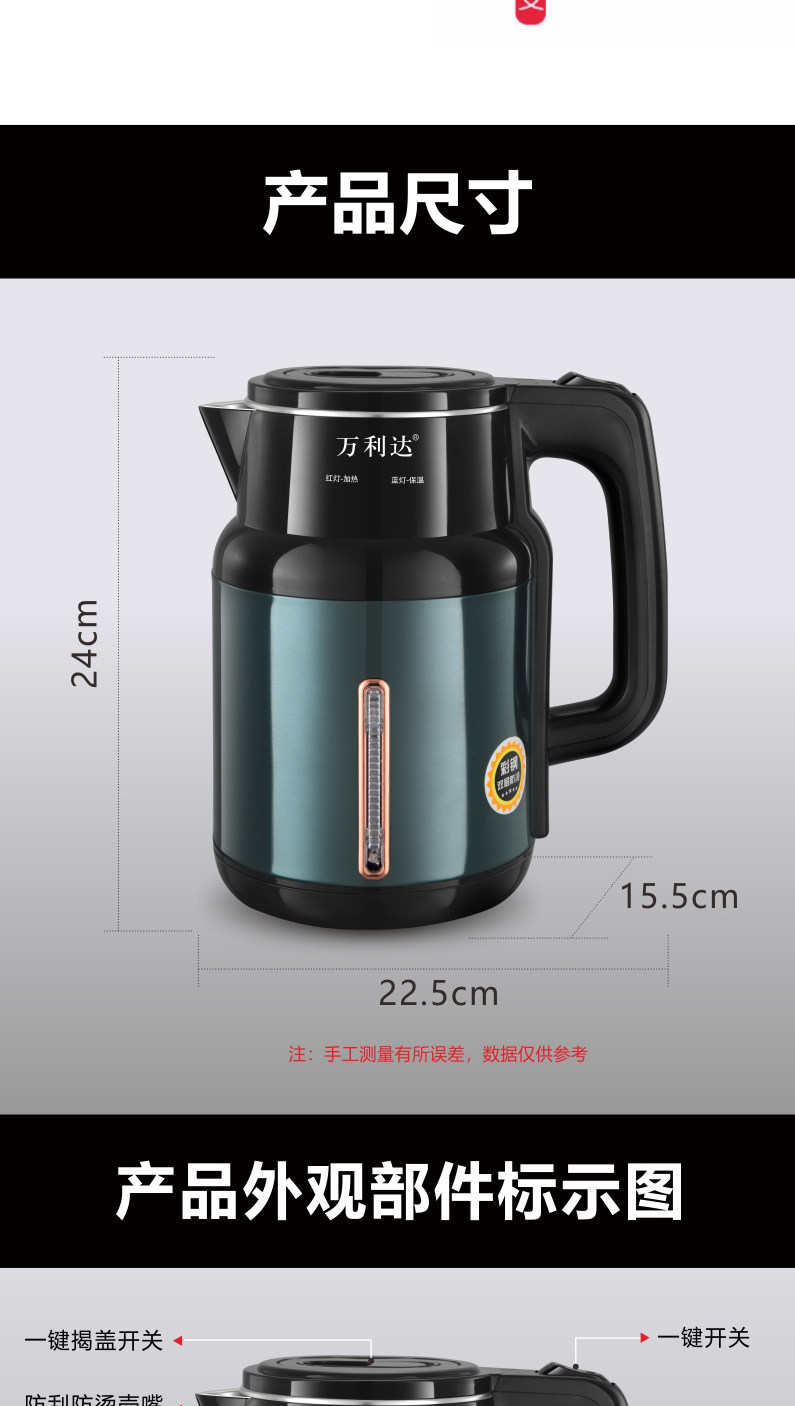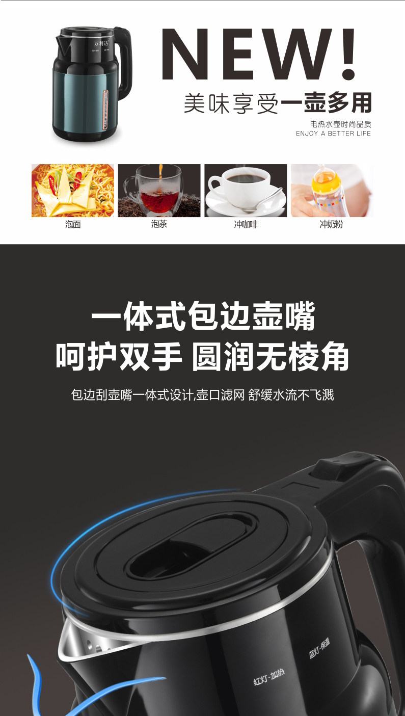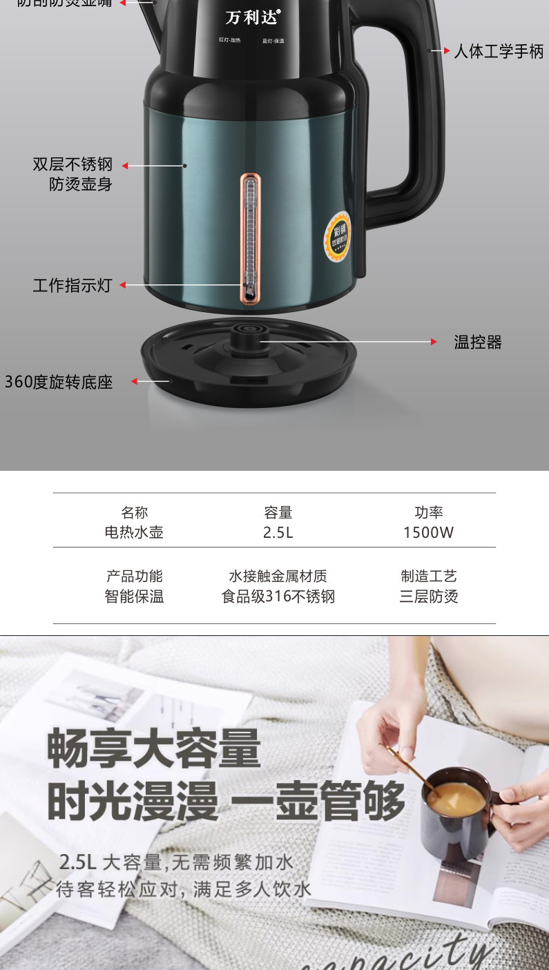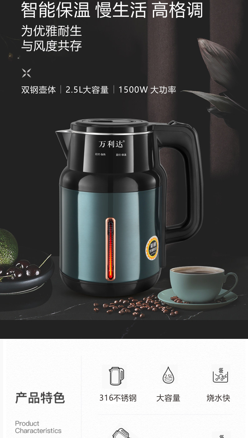 Wanlida Kettle 2025 New Model Household Insulated Integrated Constant Temperature Kettle 316 Stainless Steel Electric Kettle