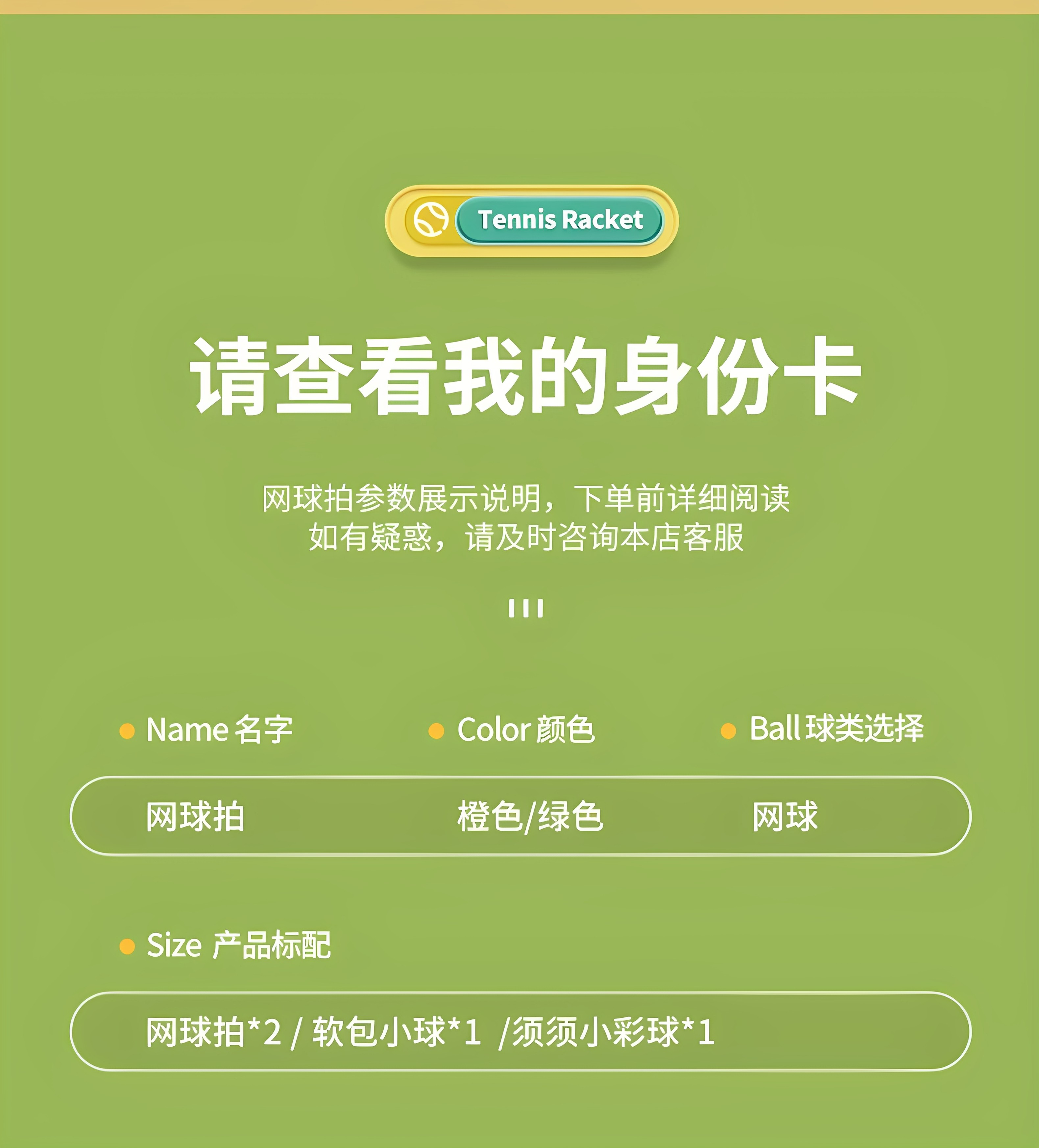 | Color Classification | Green Racket (Small Colored Ball*1+Soft Ball*1),Yellow Racket (Small Colored Ball*1+Soft Ball*1),Yellow + Green (Small Colored Ball*1+Soft Ball*1) |