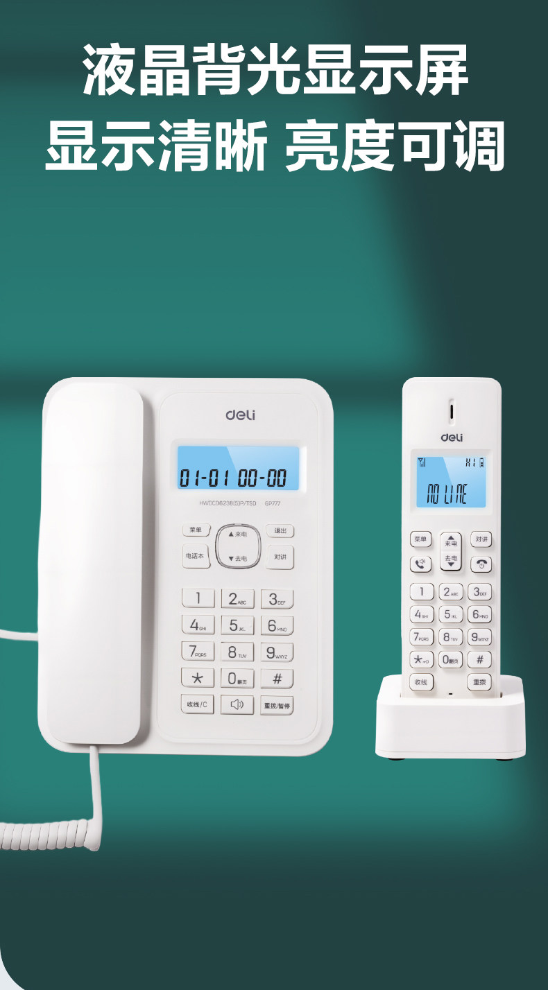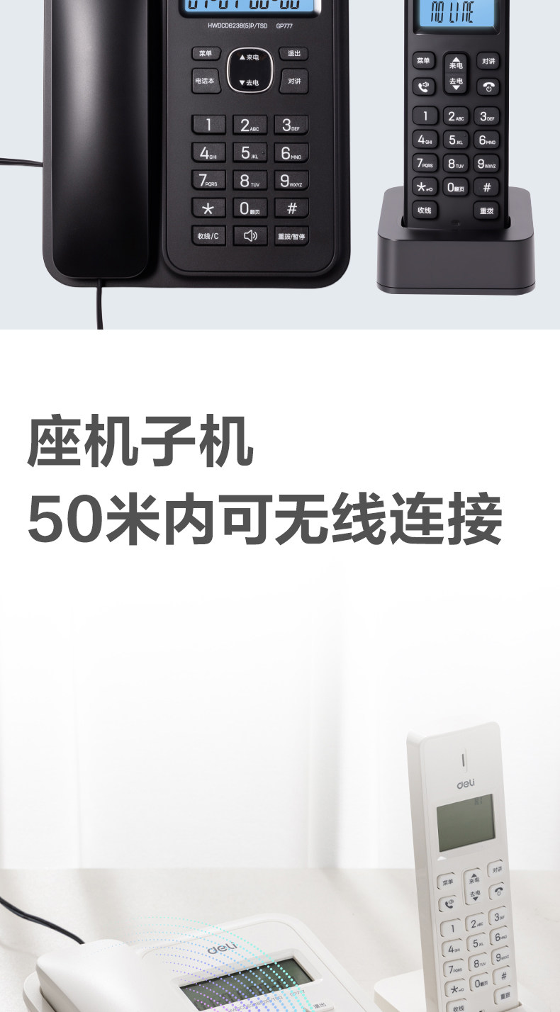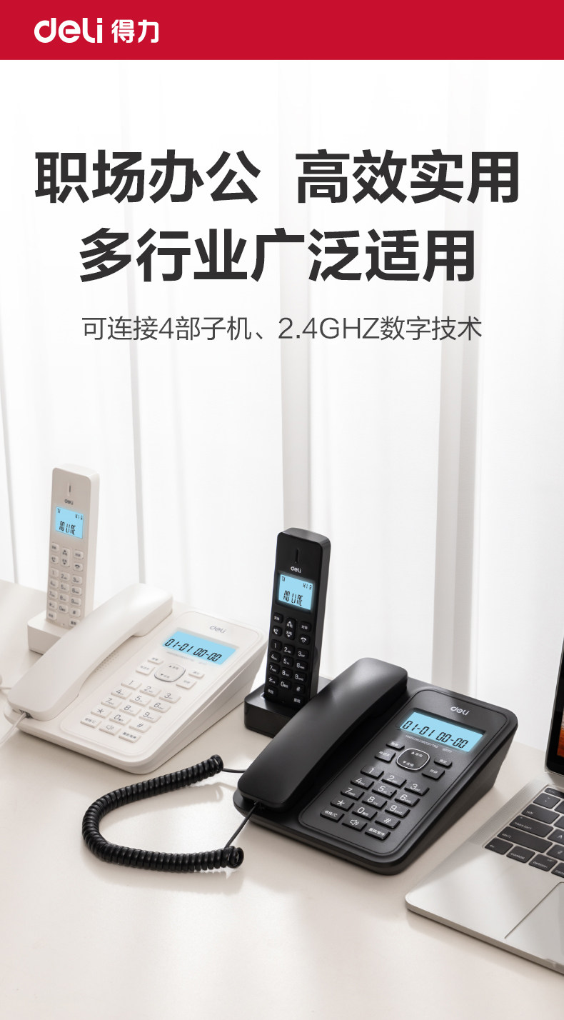 Deli Cordless Telephone Fixed Line Home Wireless Handset Office Long-Distance One-To-Two