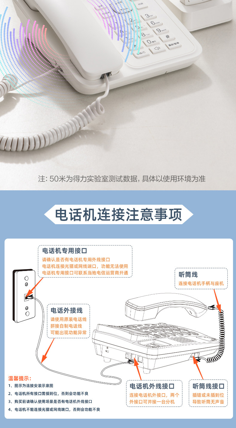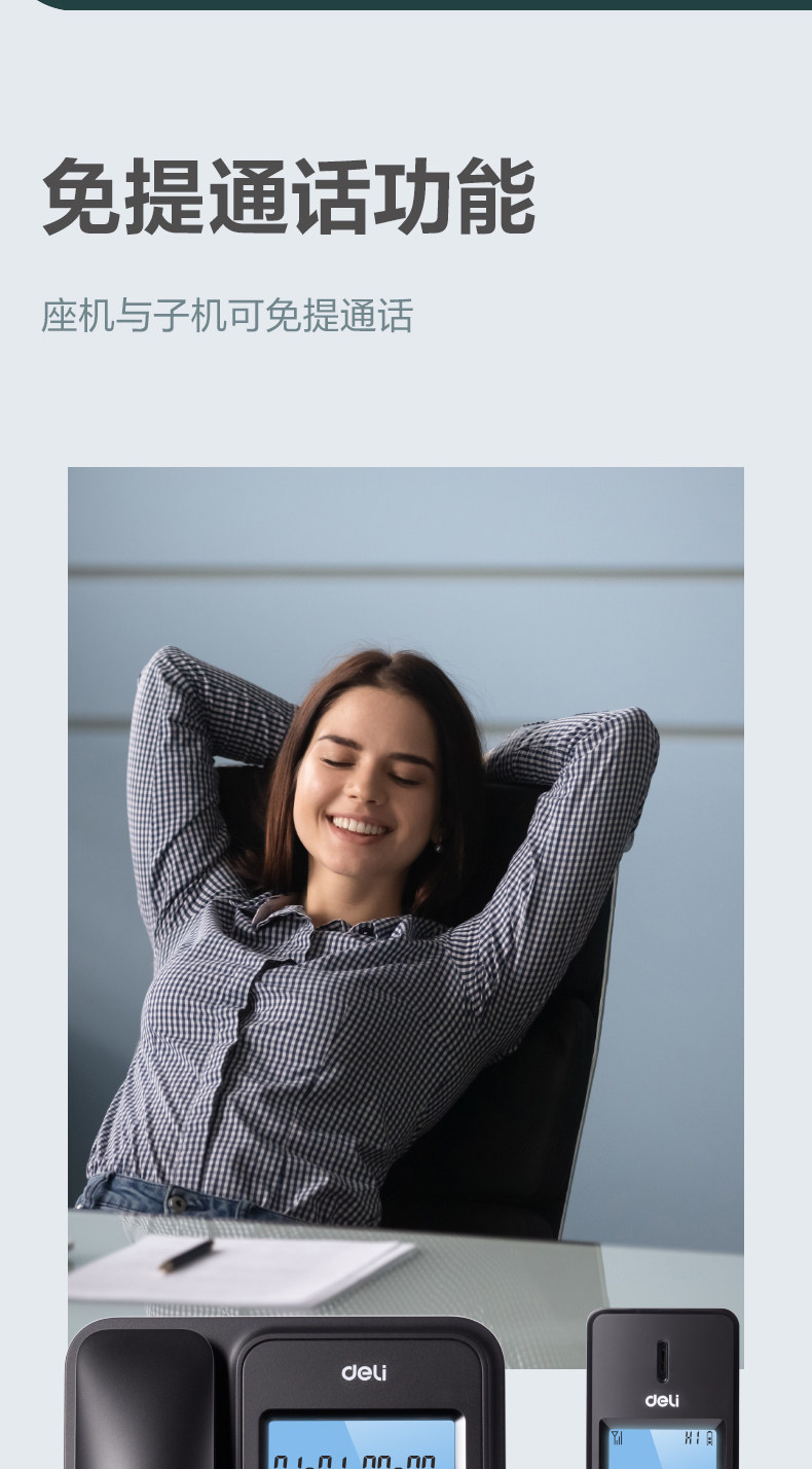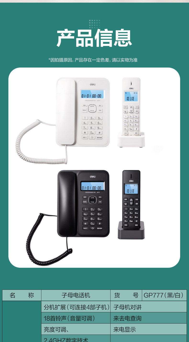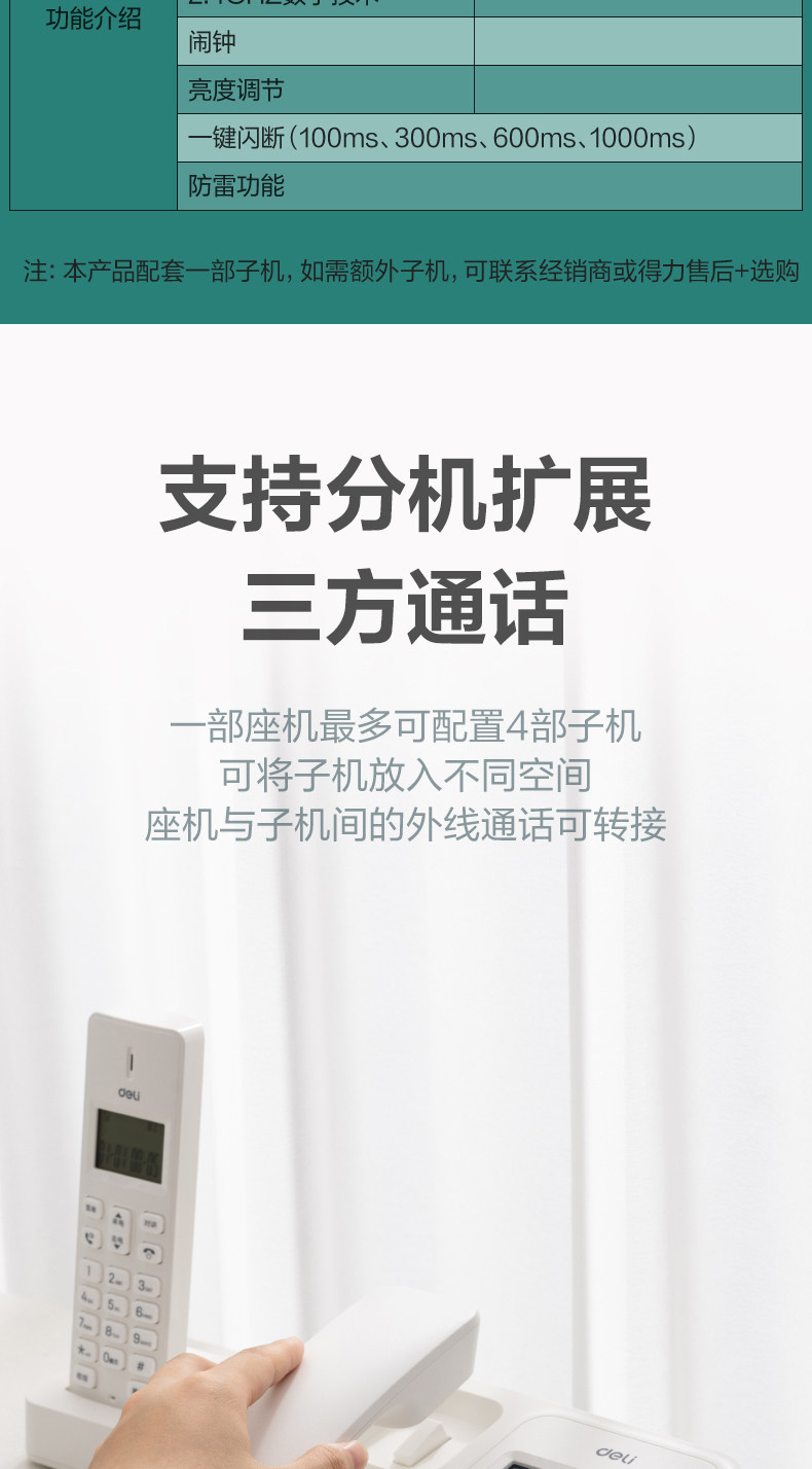 Deli Cordless Telephone Fixed Line Home Wireless Handset Office Long-Distance One-To-Two