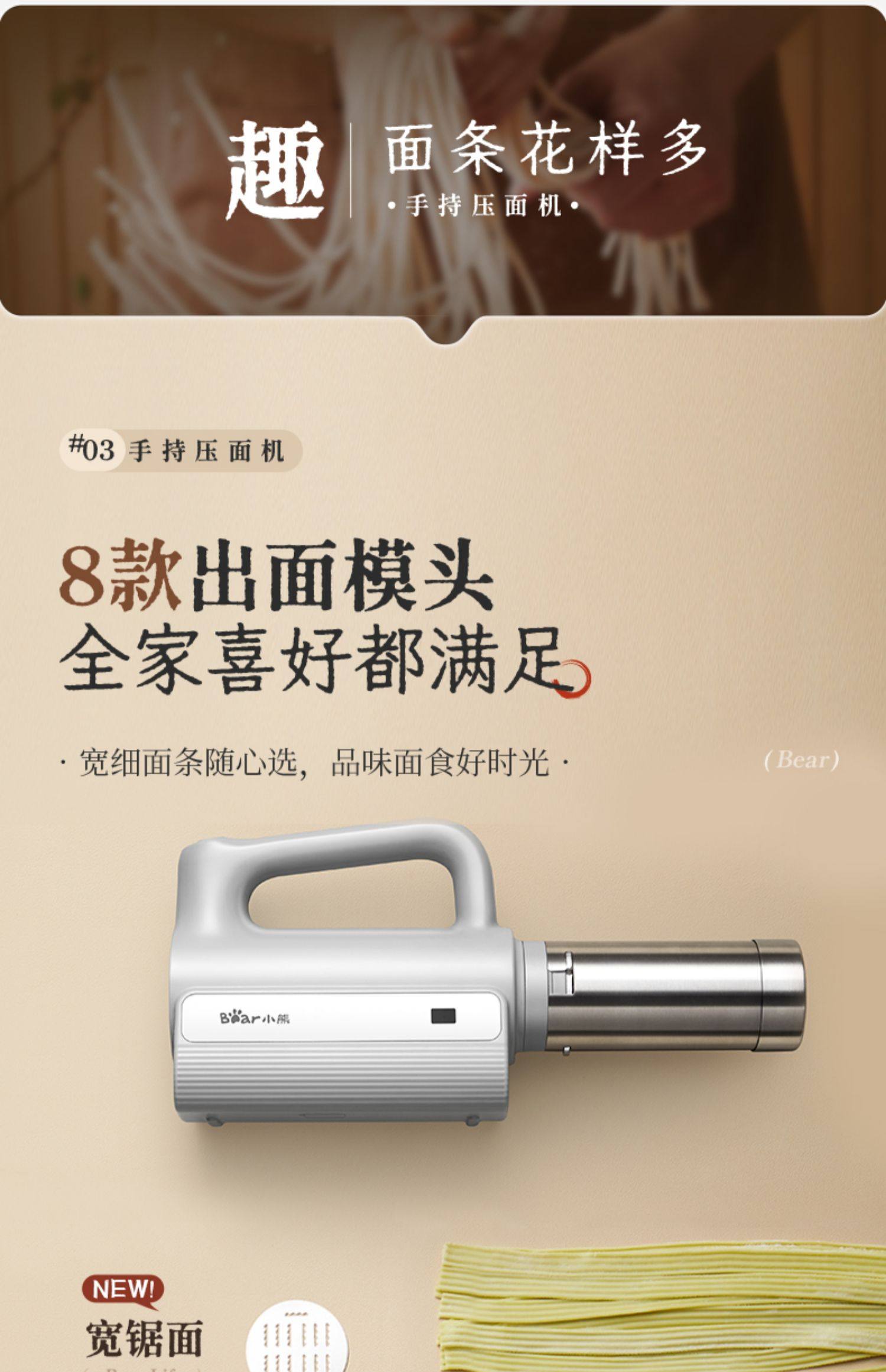 Bear Brand Noodle Maker, Household Fully Automatic 2025 New Model, Handheld Electric Noodle Machine, Smart Small Integrated Noodle Press