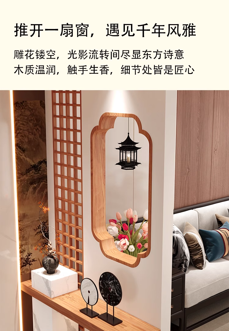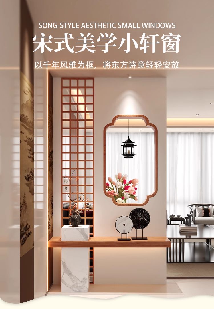 Song-Style Aesthetic Lattice Small Window with a Retro Feel, Song Dynasty Solid Wood Begonia Corner Tea Room Living Room Entrance Door Screen Window