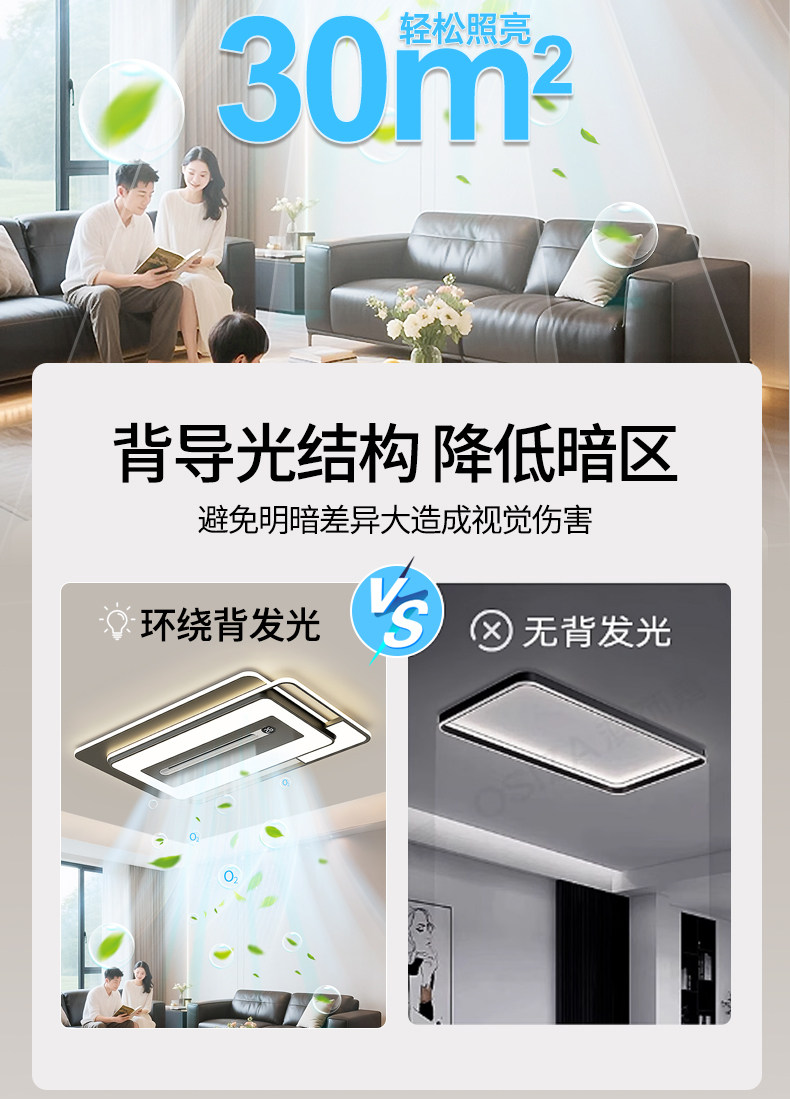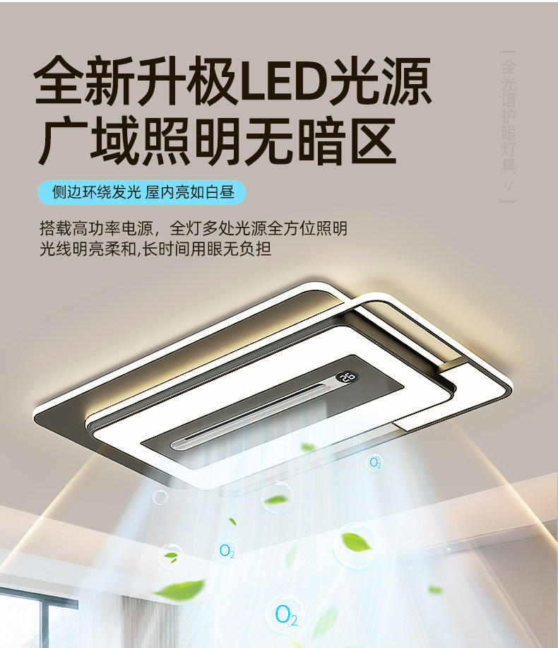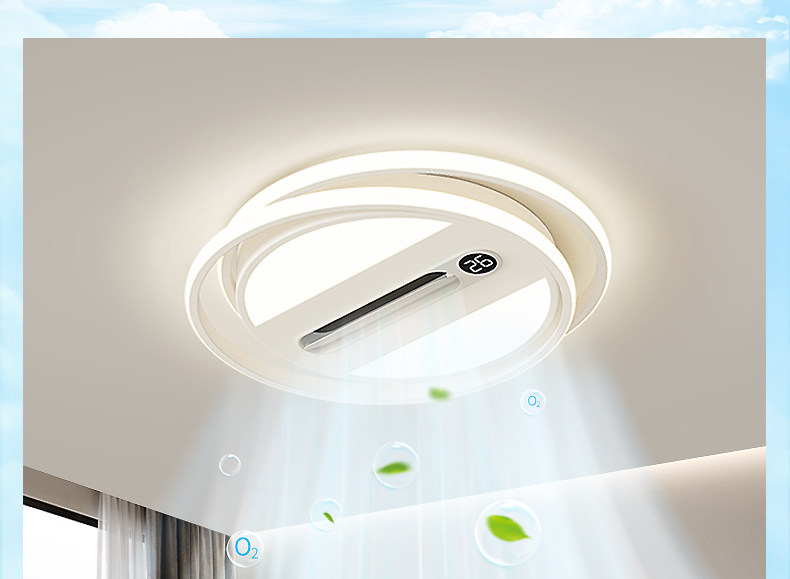 Living Room Main Light, Negative Ion Sterilization Bladeless Fan Ceiling Light, Modern Simple and Elegant Ceiling Fan Lighting, Whole House Package