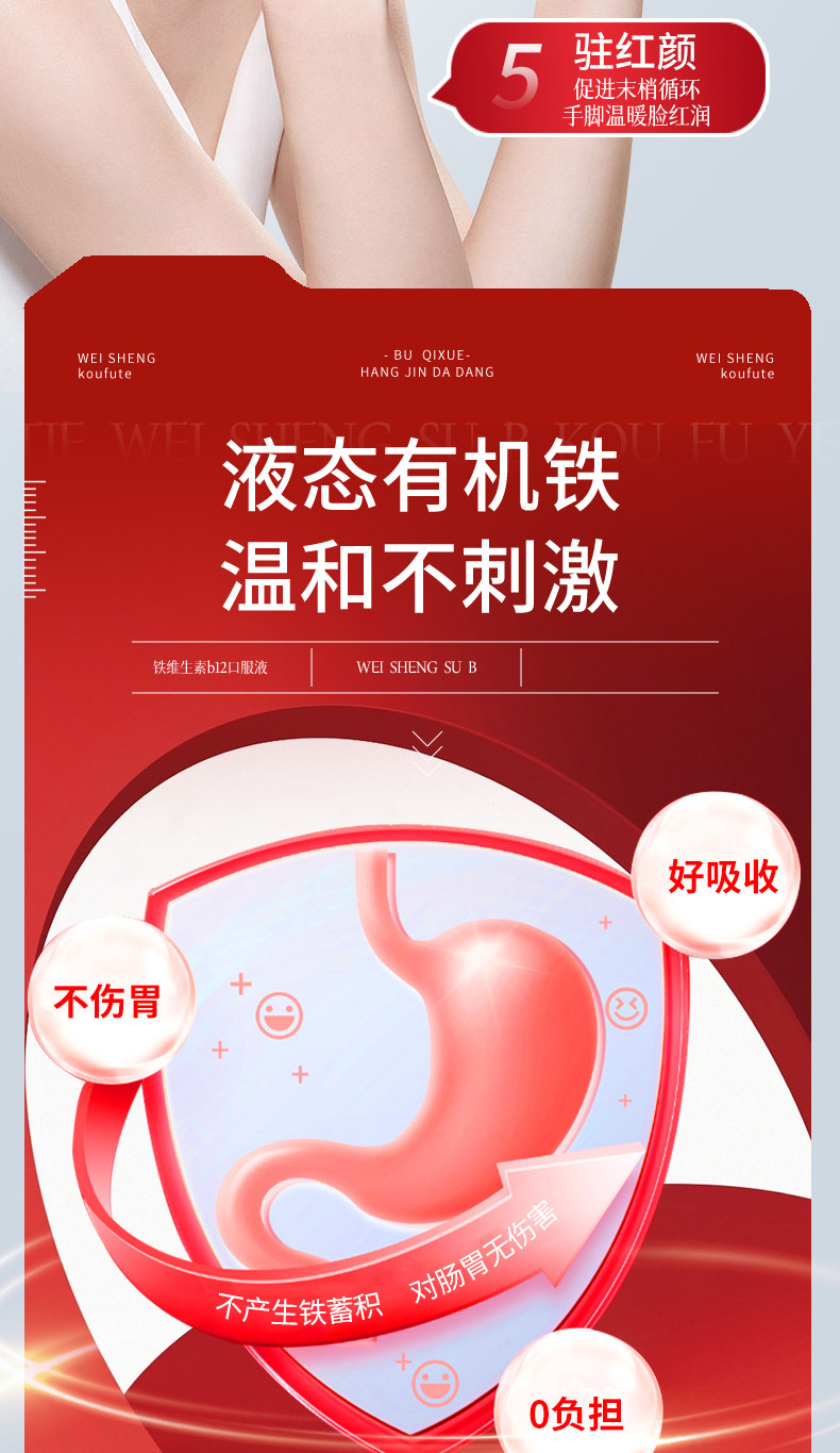 Golden Partner Iron Supplement Vitamin B12 Oral Liquid for Women, Conditioning for Pregnant Women, Replenishing Qi and Blood, Official Authentic Flagship Store