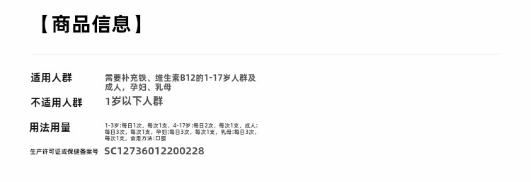 | Efficacy | Supplement Iron, Vitamin B12 |