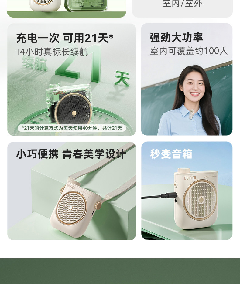 Edifier Mf2 Lavalier Microphone Amplifier for Teachers, Wireless Microphone for Teaching, Loudspeaker