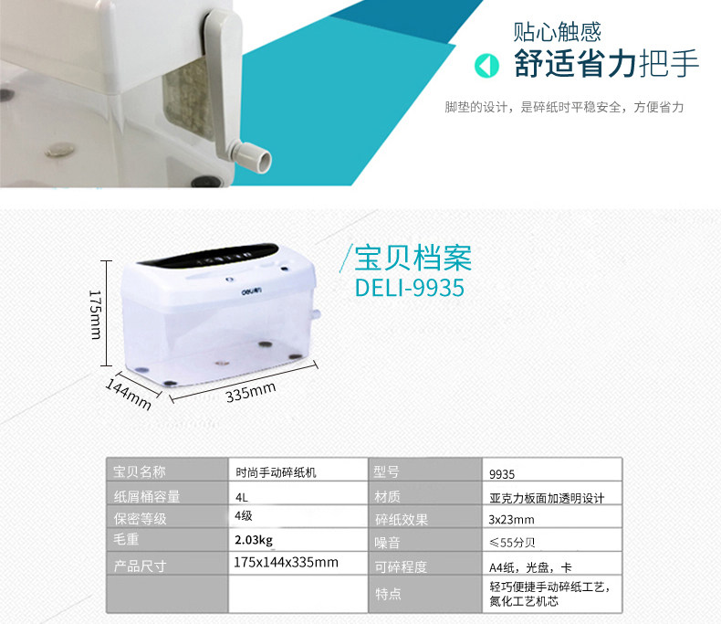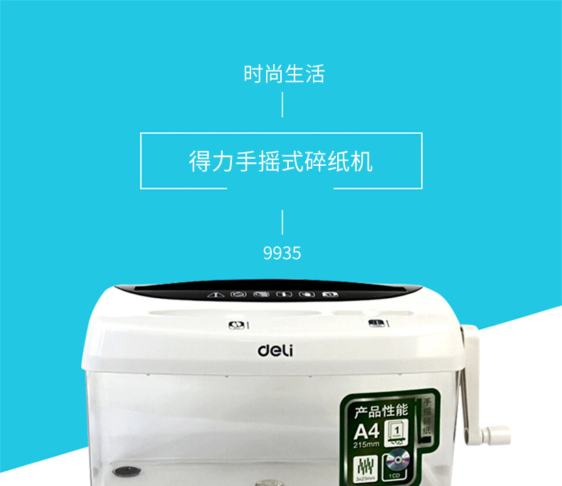 Deli 9935 Manual Shredder Office Dedicated Convenient Desktop A4 Paper Document Confidential Disc Card Quick Shredder Mini Small Household Paper Shredder Multi-Function Hand Shredder