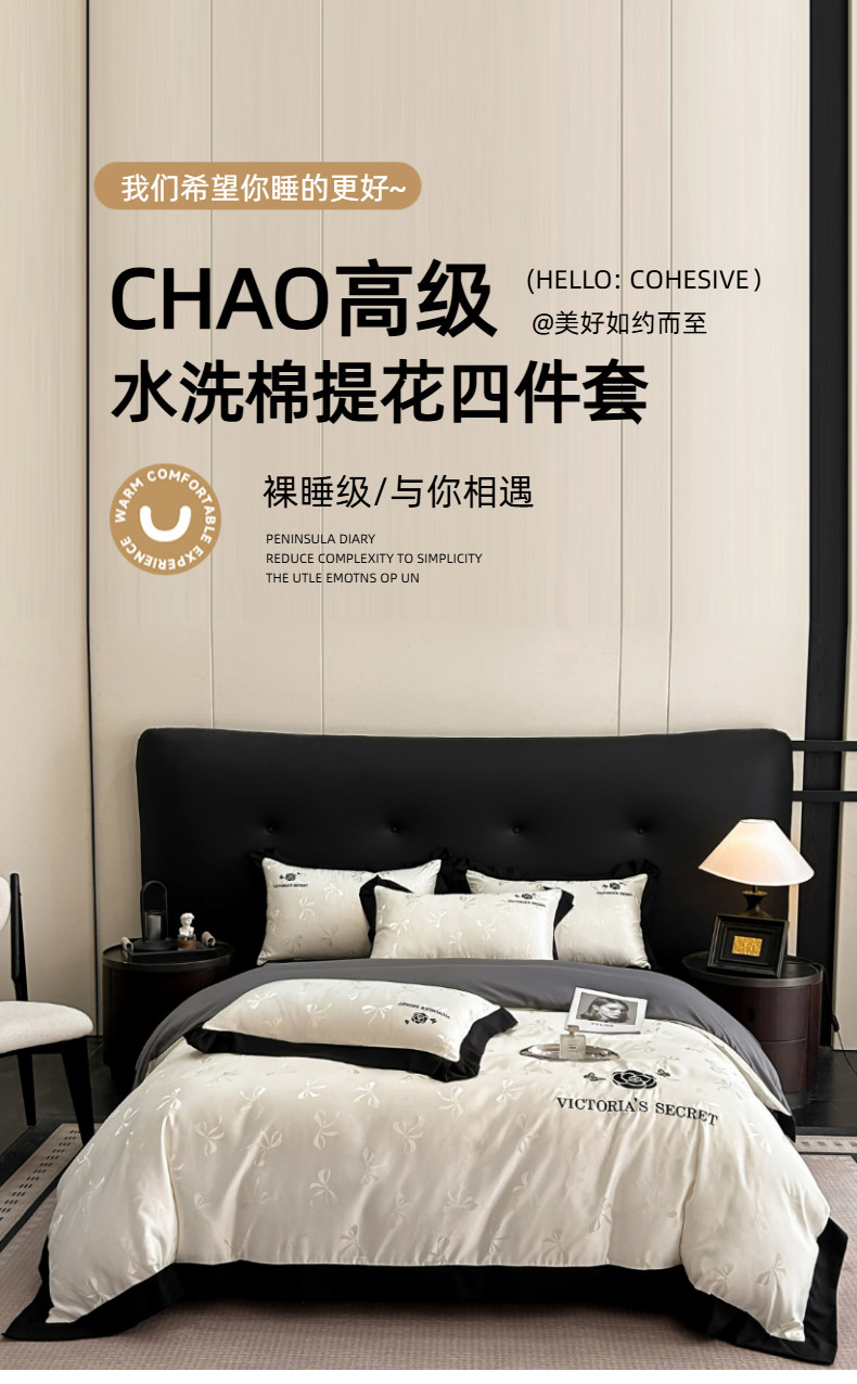 2025 New Four-Piece Bed Sheet Set, Simple and High-End Feel, Duvet Cover, Non-Pure Cotton, 100% Cotton Fitted Sheet Style Bedding 4