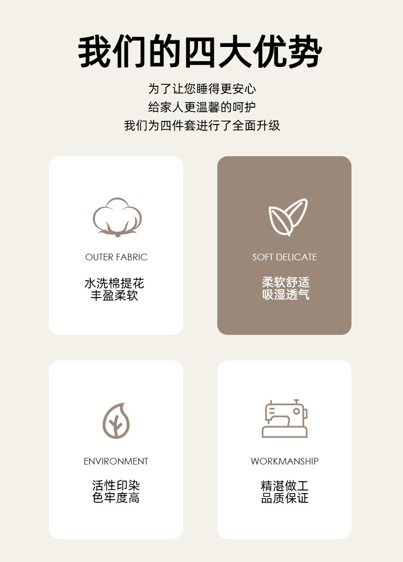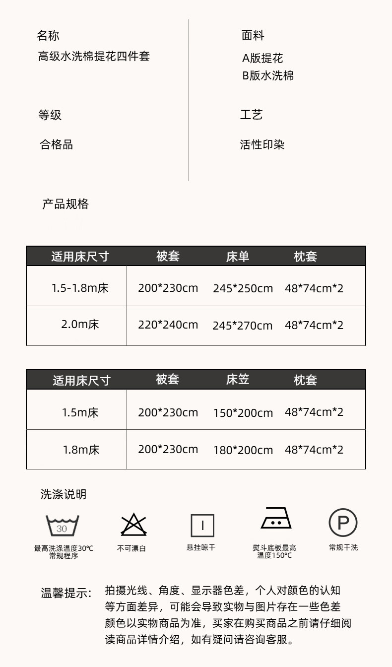 | Applicable Bed Size | 1.5m Bed[Four-Piece Bed Sheet Set]-Suitable for 200X230Cm Quilt Core,1.8m Bed[Four-Piece Bed Sheet Set]-Suitable for 200X230Cm Quilt Core,2.0m Bed[Four-Piece Bed Sheet Set]-Suitable for 220X240Cm Quilt Core,★1.5m Bed[Four-Piece Fitted Sheet Set]-Suitable for 200X230Cm Quilt Core,★1.8m Bed[Four-Piece Fitted Sheet Set]-Suitable for 200X230Cm Quilt Core,★2.0m Bed[Four-Piece Fitted Sheet Set]-Suitable for 220X240Cm Quilt Core |