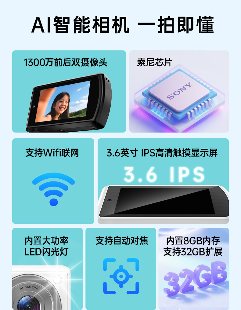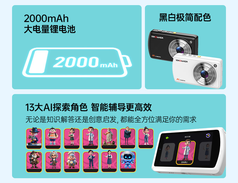Songdian Ai Learning Camera, Smart Camera That Recognizes All Things with One Click, Early Education Gift, Story Machine, Dual-Camera Camera