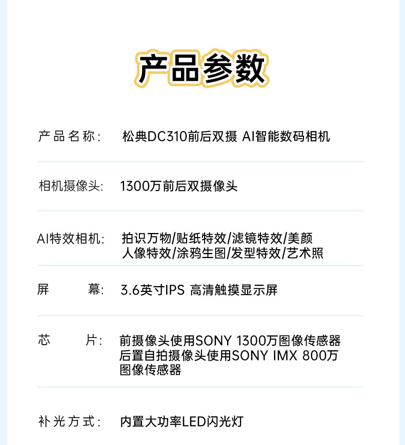 | Color Classification | White [Multiple Ai Special Effects + Front and Rear Dual Cameras/Can Take Selfies + 3.6inch Touch Screen + Wifi Transmission + Built-In Flash],Black [Multiple Ai Special Effects + Front and Rear Dual Cameras/Can Take Selfies + 3.6inch Touch Screen + Wifi Transmission + Built-In Flash],【Package Description: Standard Official Configuration - No Memory Card】Please Do Not Purchase This Option |