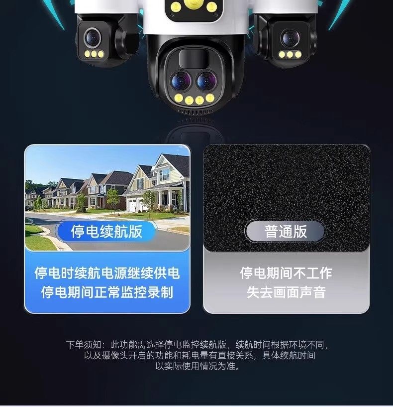 | Color Classification | Wifi [Ultra Hd 3-Lens] 3-Lens 3-View + 360° Blind Spot Elimination + Remote Mobile Access + Two-Way Voice Communication + Full-Color Night Vision,Wifi [Ultra-Clear 3 Lenses + Power Outage Battery Life] 3 Lenses, 3 Screens + 360 No Dead Ends + Mobile Phone Remote + Voice Intercom + Full Color Night Vision),【4G Lifetime Free Data - Solar Dual Panel Model】【Hd Triple Lens】【Year-Round Uninterrupted Power + Humanoid Tracking + Full-Color Night Vision + Crystal-Clear Face Recognition】,【4G Lifetime Free Data - Solar Dual Panel Model】【Top-Tier Quad-Lens】【Year-Round Uninterrupted Power + Humanoid Tracking + 20X Zoom + 0m Crystal-Clear Face Recognition】 |