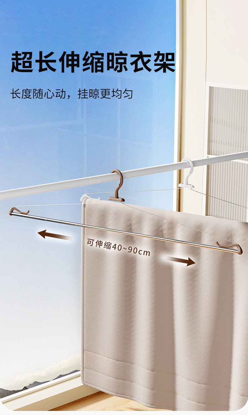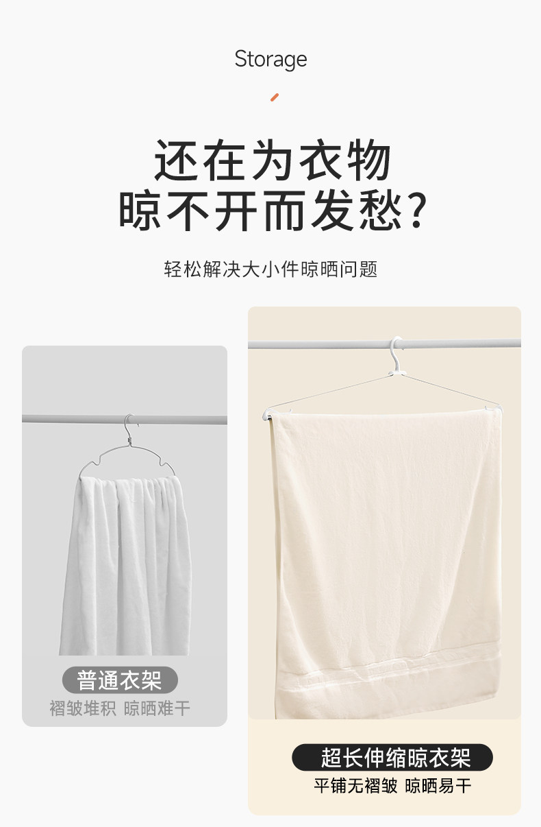 Large Clothes Hanger for Drying Quilts, Bed Sheets, Bath Towels, Household Extra-Large Extendable Non-Marking Adjustable Telescopic Hanger with Anti-Slip Feature