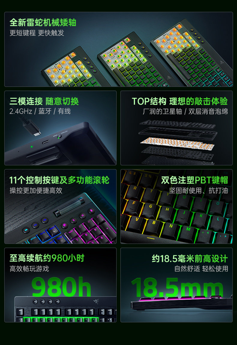Razer Black Widow Spider V4 Low Profile Extreme Speed Edition Tri-Mode Wireless Gaming Mechanical Keyboard