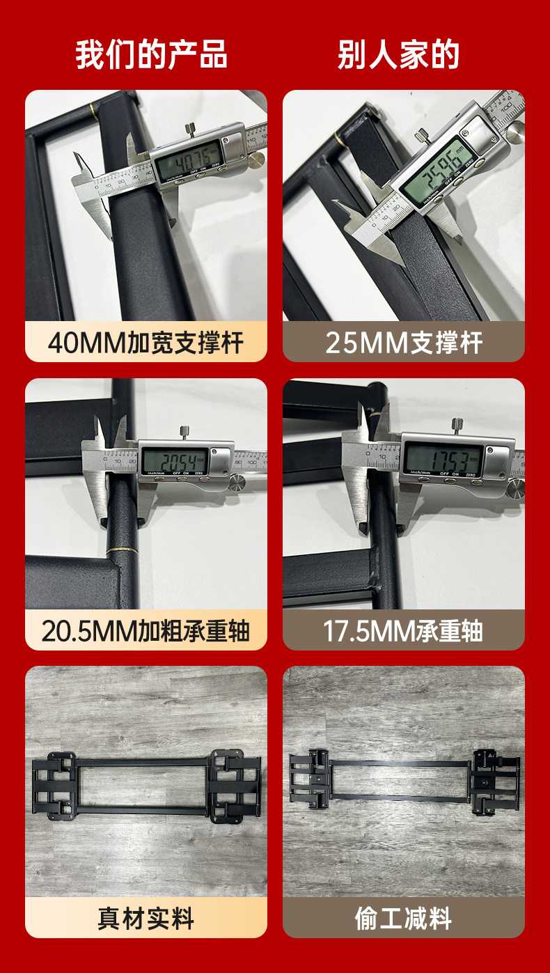| Color Classification | 15 / Lifetime Warranty,Thick Load-Bearing Shaft[32-75inch]Millimeter Fine Adjustment/Thickness about 3.2Cm/Load Capacity 100kg,Thick Load-Bearing Shaft[40-86inch]Millimeter Fine Adjustment/Thickness about 3.2Cm/Load Capacity 110kg,Thick Load-Bearing Shaft[50-100inch]Millimeter Fine Adjustment/Thickness about 4Cm/Load Capacity 130kg,Thick Load-Bearing Shaft[50-120inch]Millimeter Fine Adjustment/Thickness about 4Cm/Load Capacity 200kg,Thick Load-Bearing Shaft[75-150inch]Millimeter Fine Adjustment/Thickness about 4Cm/Load Capacity 200kg |