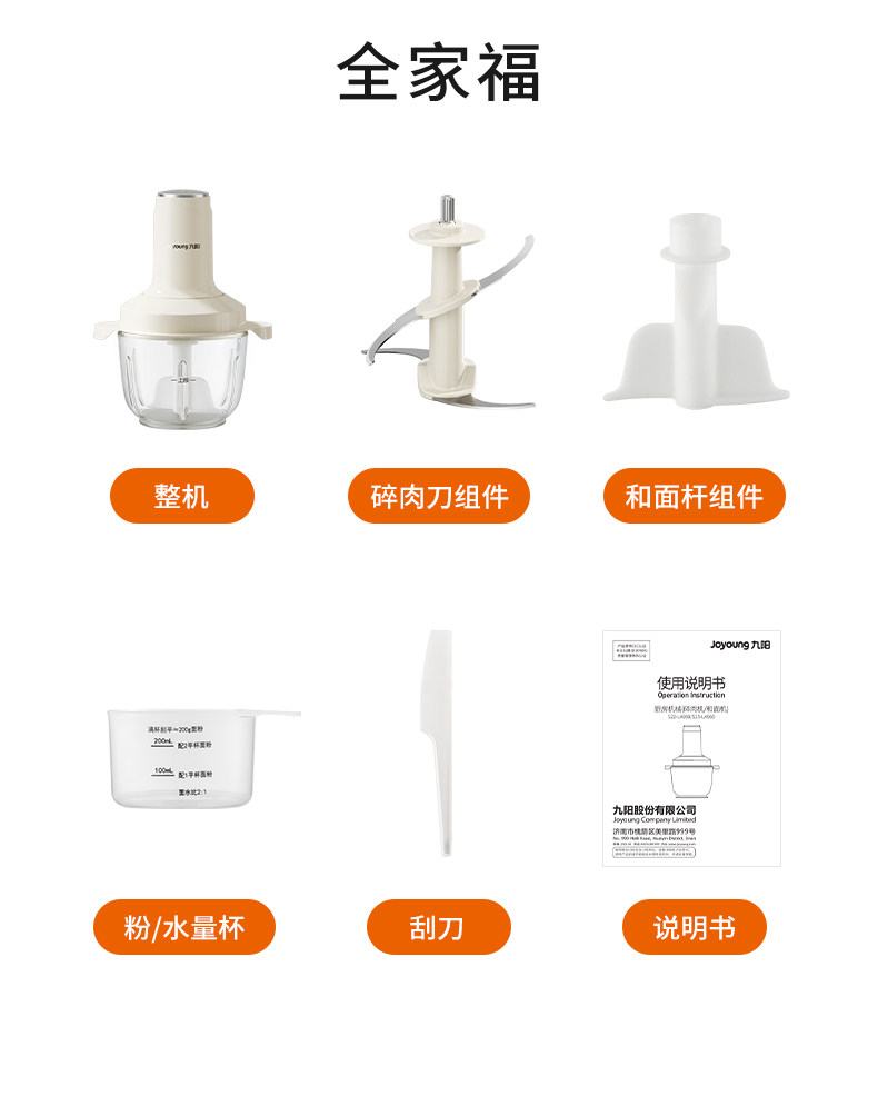 Joyoung Meat Grinder and Dough Mixer, Household Fully Automatic Food Processor, Small Kneading and Mixing Machine, All-In-One Kneading Machine