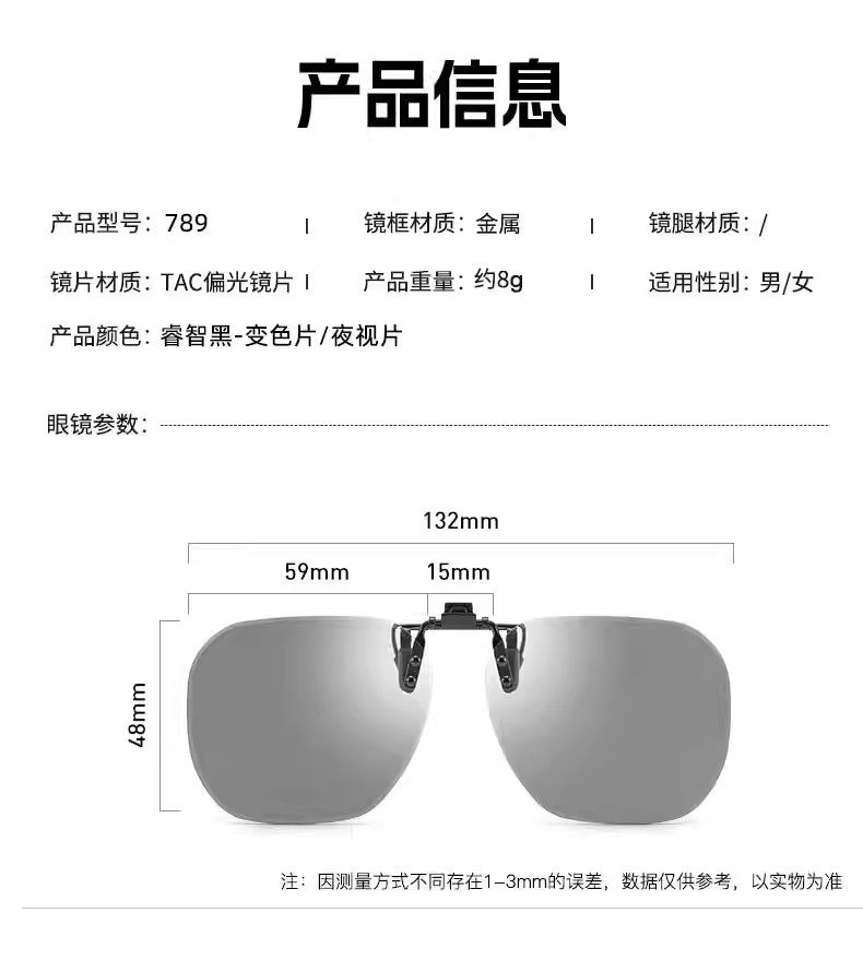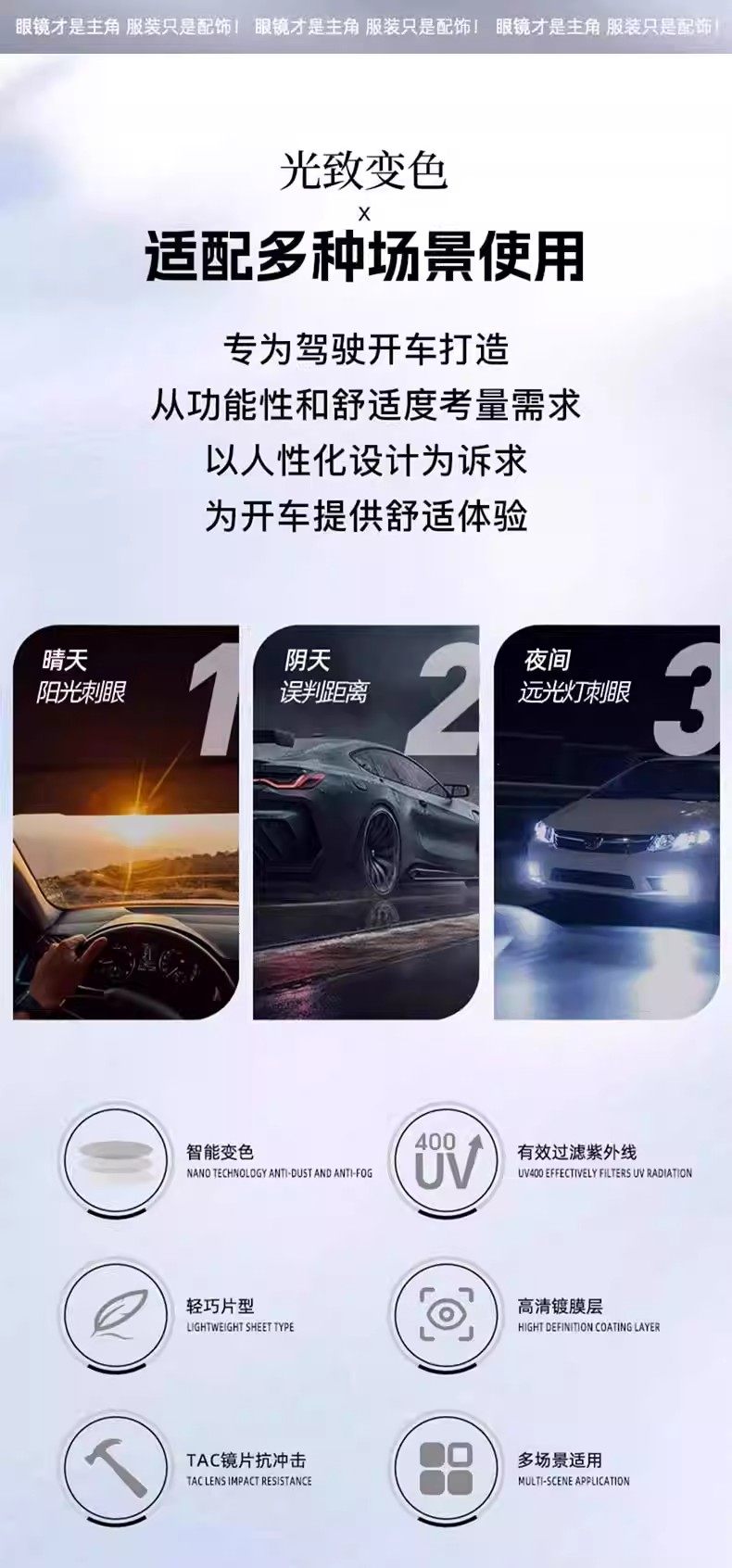 | Color Classification | Color Changing Film[Polarized]-Day and Night Use,Black and Gray Film[Polarized]-Daily Use,Night Vision Color Changing Film[Polarized]-Security Driving,Dark Green Film[Polarized]-Fashion Travel,Ice Blue Slices[Polarized]-Fashion Travel,Mercury Flakes[Polarized]-Fashion Travel |