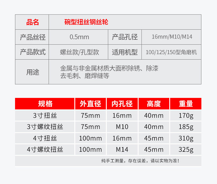 | Model | Twisted Wire Bowl-Shaped Wire Wheel |