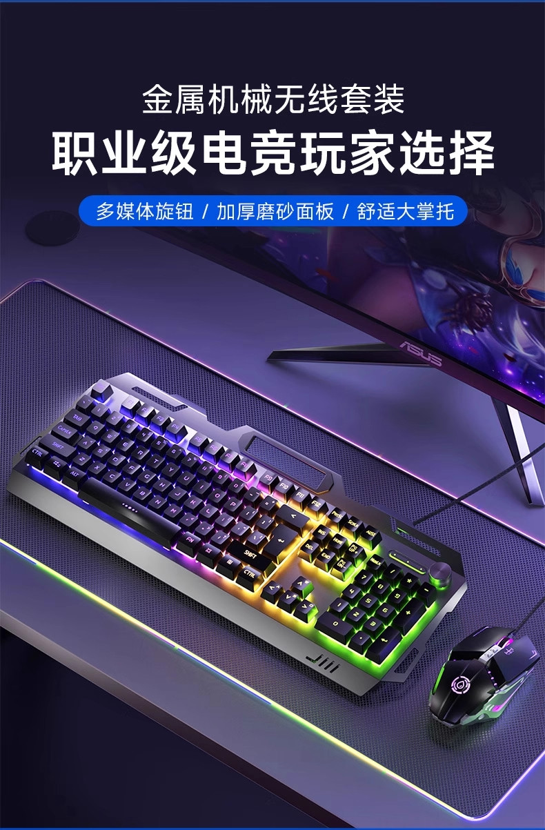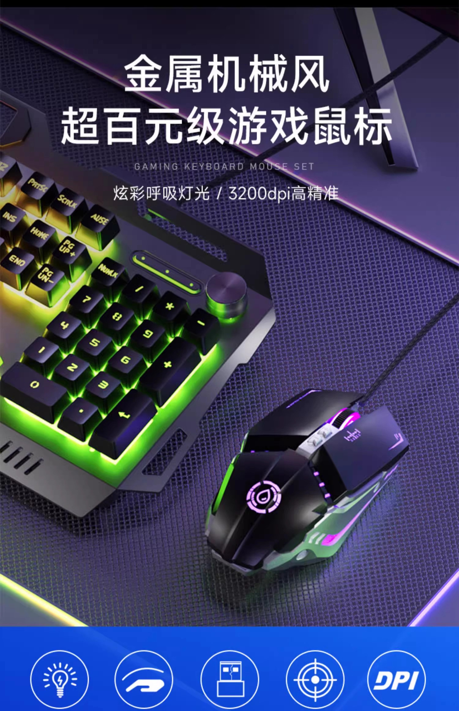 Wrangler Mechanical Feel Keyboard and Mouse Set, Computer E-Sports Gaming Dedicated Wired Office Headset Three-Piece Set