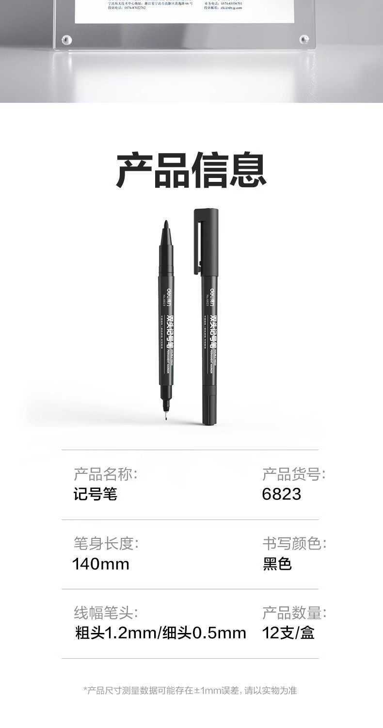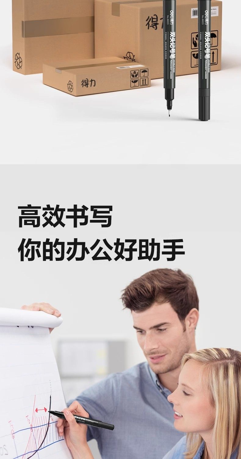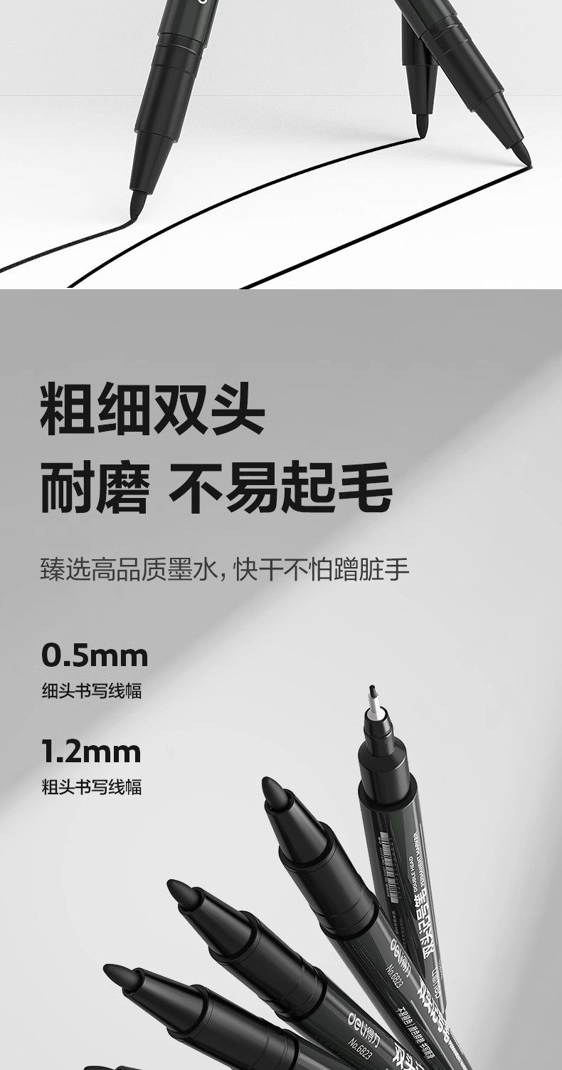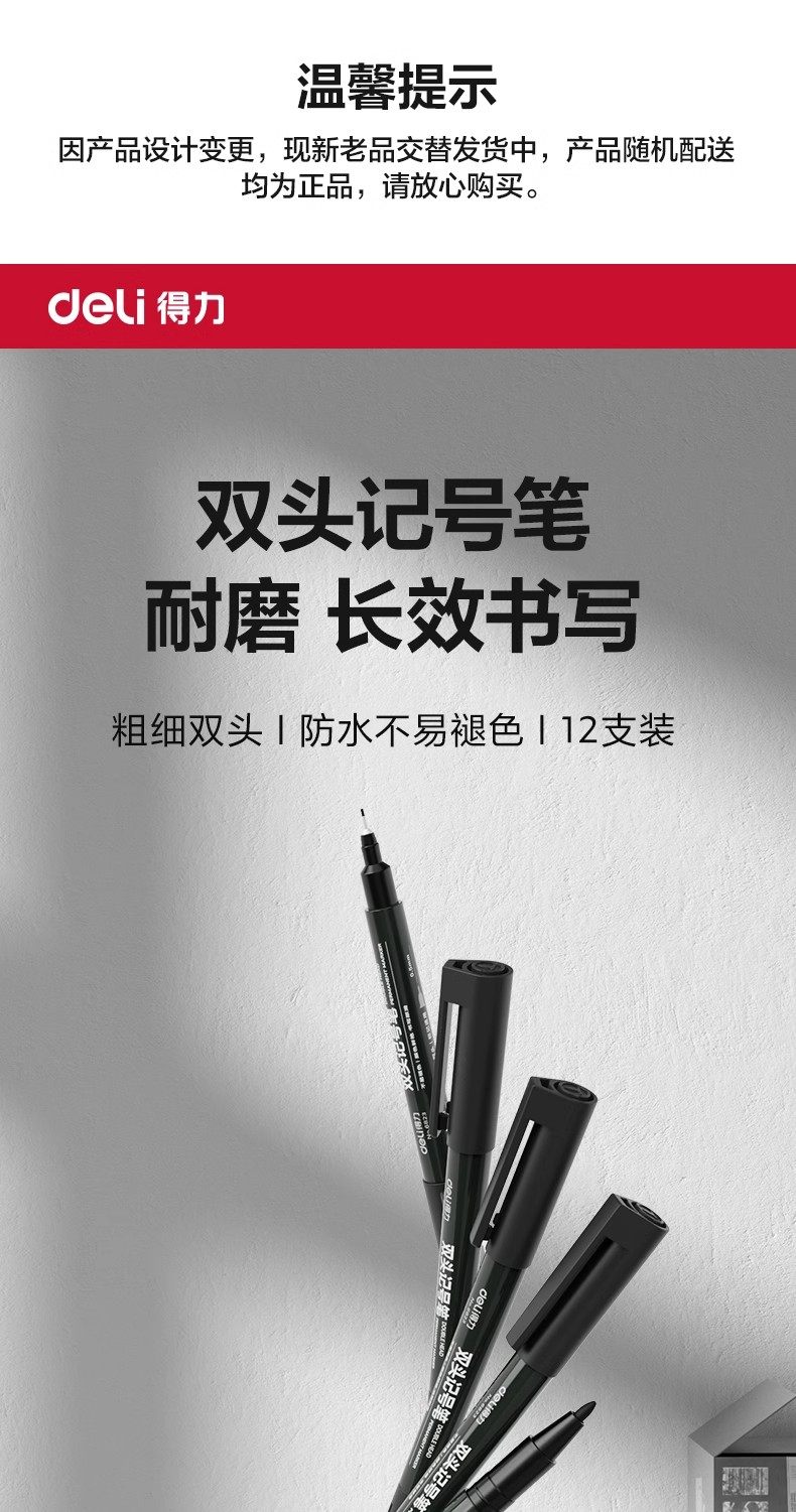 Deli Marker Pen, Small Double-Headed Oil-Based Liner Pen, Small Tip, Two Fine Tips, Marker Pen for Children's Drawing, Waterproof and Quick-Drying