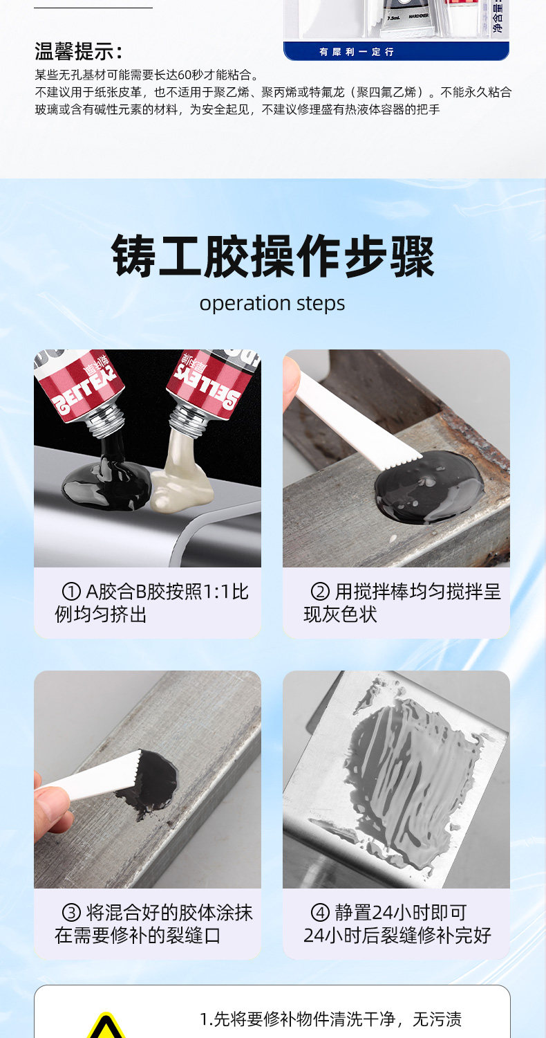 Nippon Metal Ab Strong Adhesive Casting Glue, High Temperature Resistant, Waterproof, Iron-Adhering, Stainless Steel Radiator Repair Welding Glue