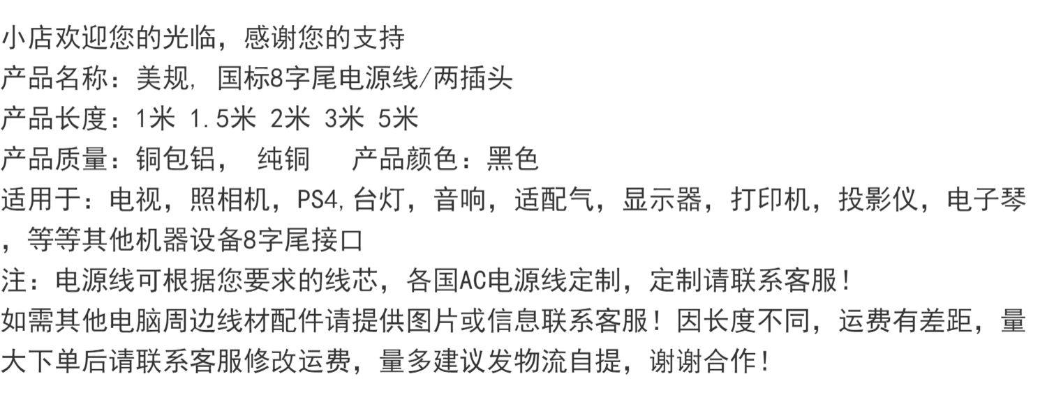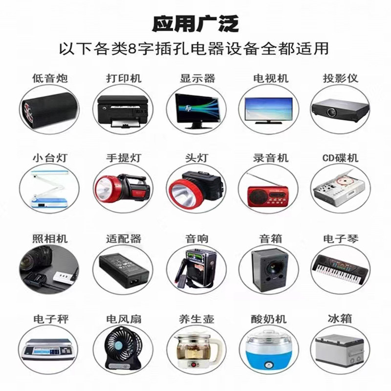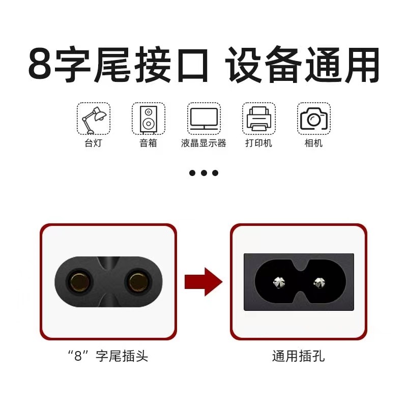 8-Shaped Power Cord, 2-Core with Plug, Universal Type for Tv, Audio, Printer, Projector, Monitor, Desk Lamp, Charging Cable