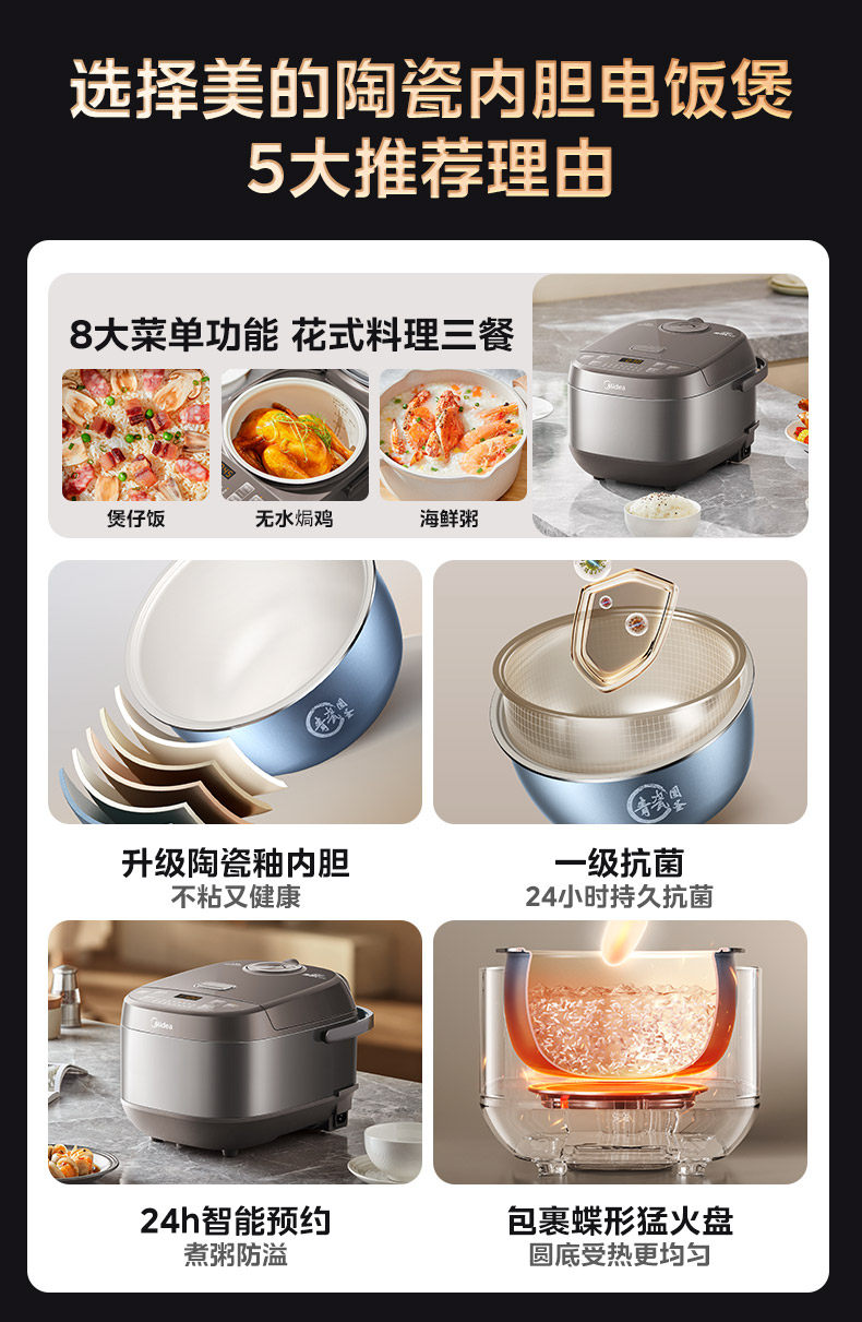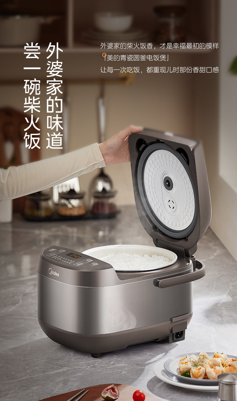 Midea Rice Cooker for Home Use, 5L Ceramic Inner Pot, 2025 New Model, Large Capacity, Suitable for Cooking Rice for 3 to 4-6 People