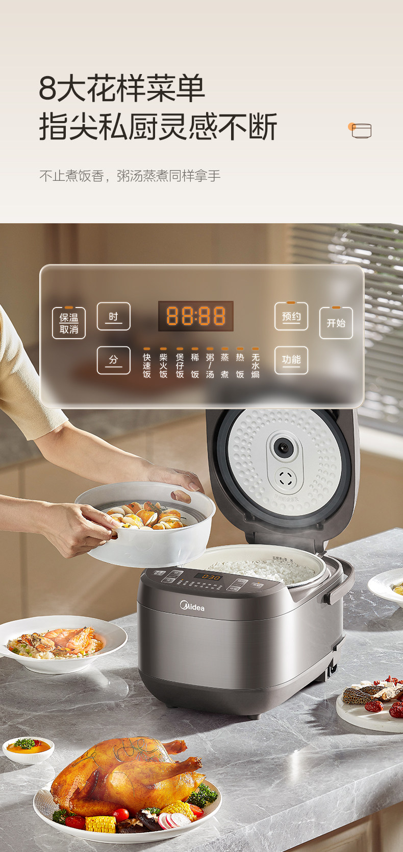 | Multifunctional Rice Cooker | Steaming,Soup,Cooking Rice,Claypot Rice,Brown Rice,Hot Meals,Multigrain Rice,Keep Warm,Cook Porridge |