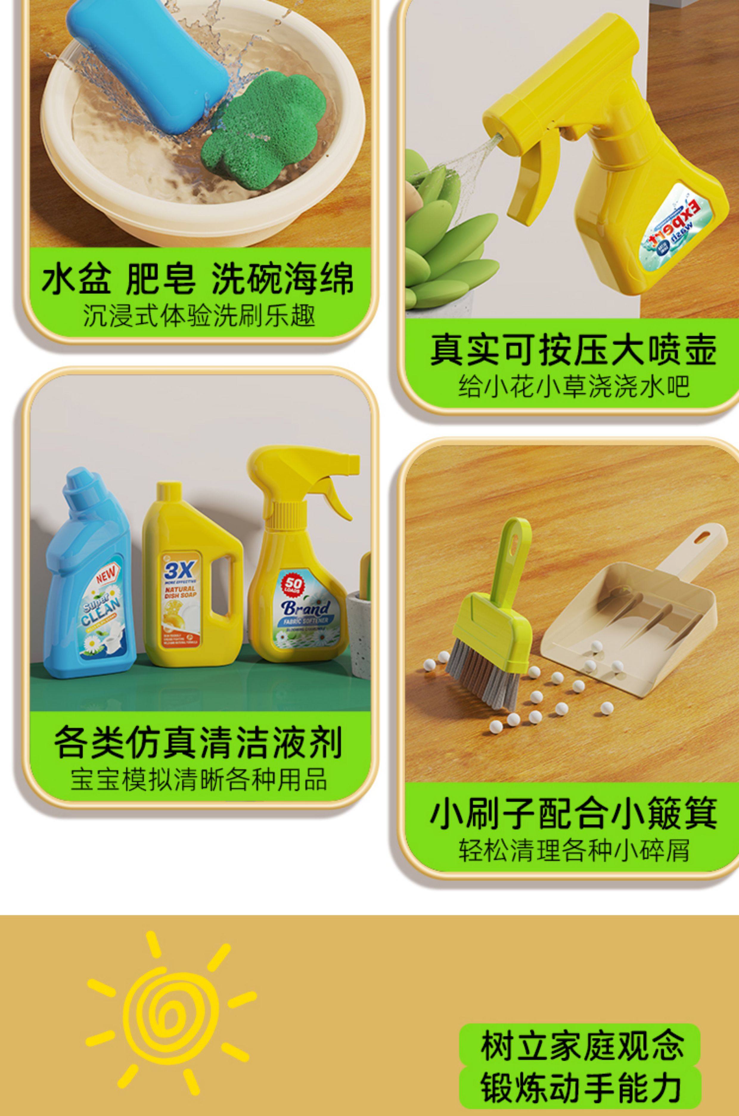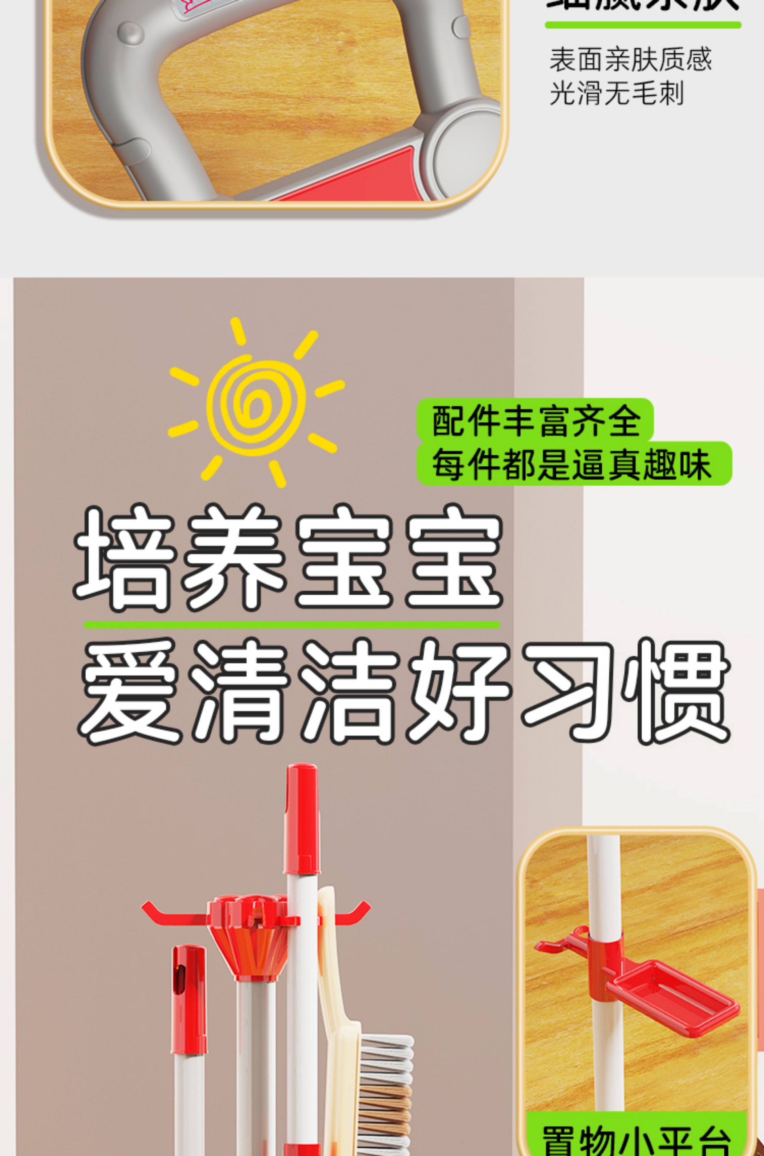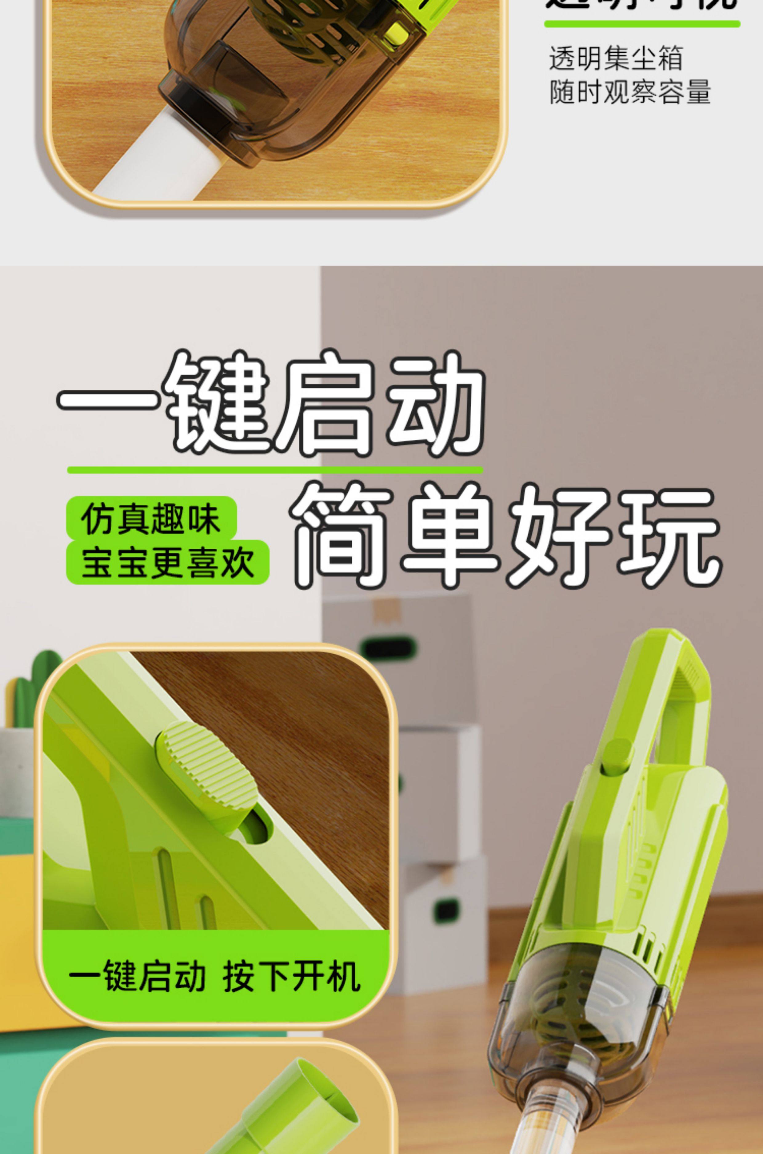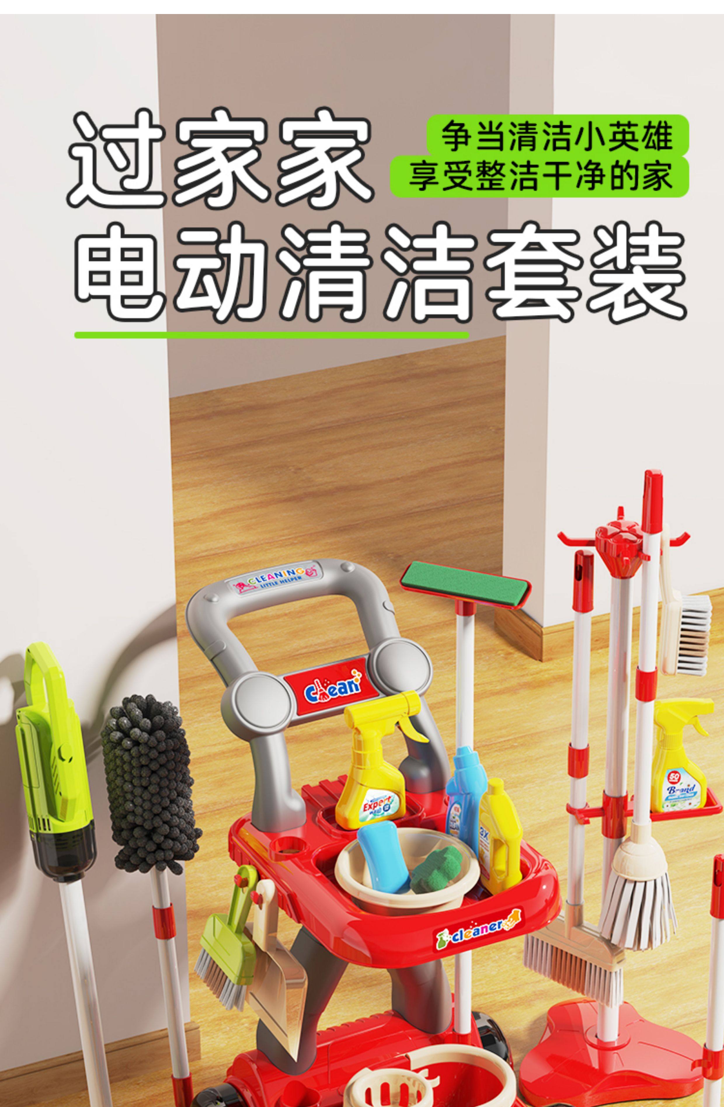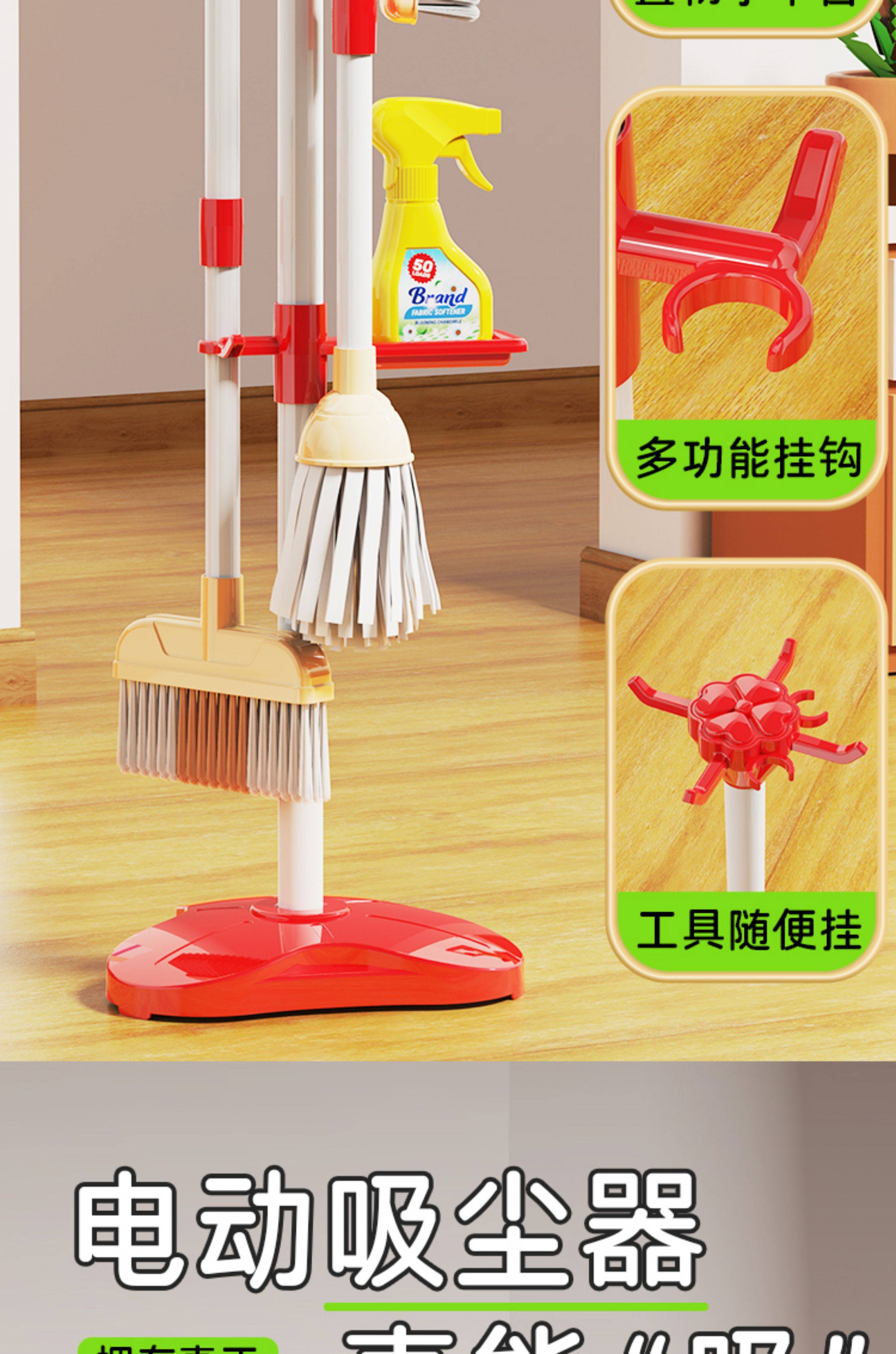 Children's Broom, Mop, Dustpan Toy, Girls' Pretend Play Mini Realistic Electric Vacuum Cleaner, Educational for Ages 3 to 6
