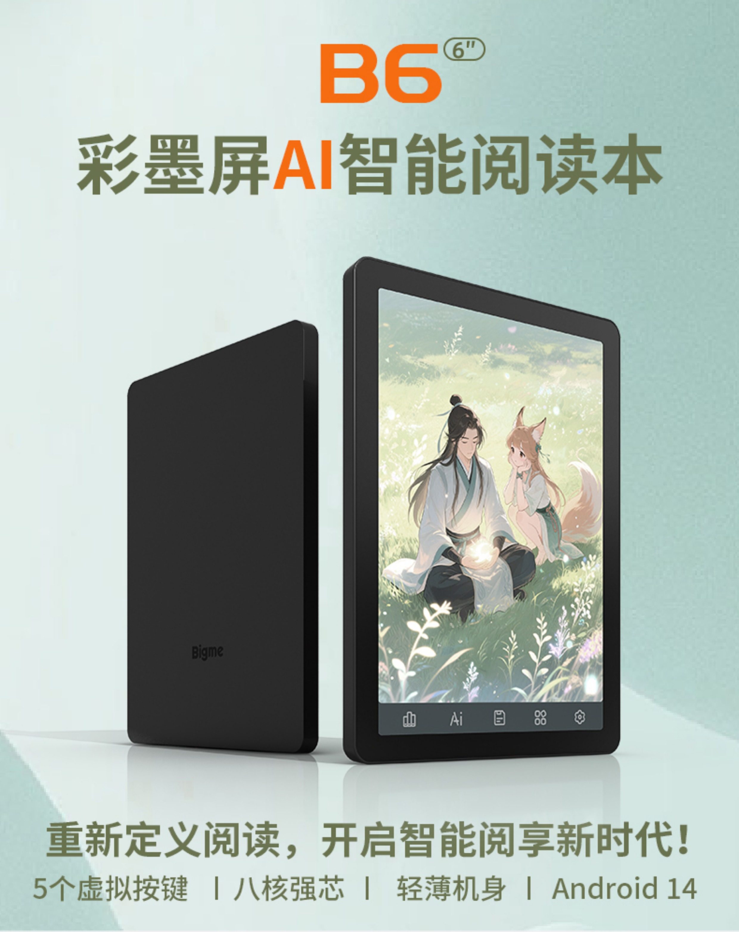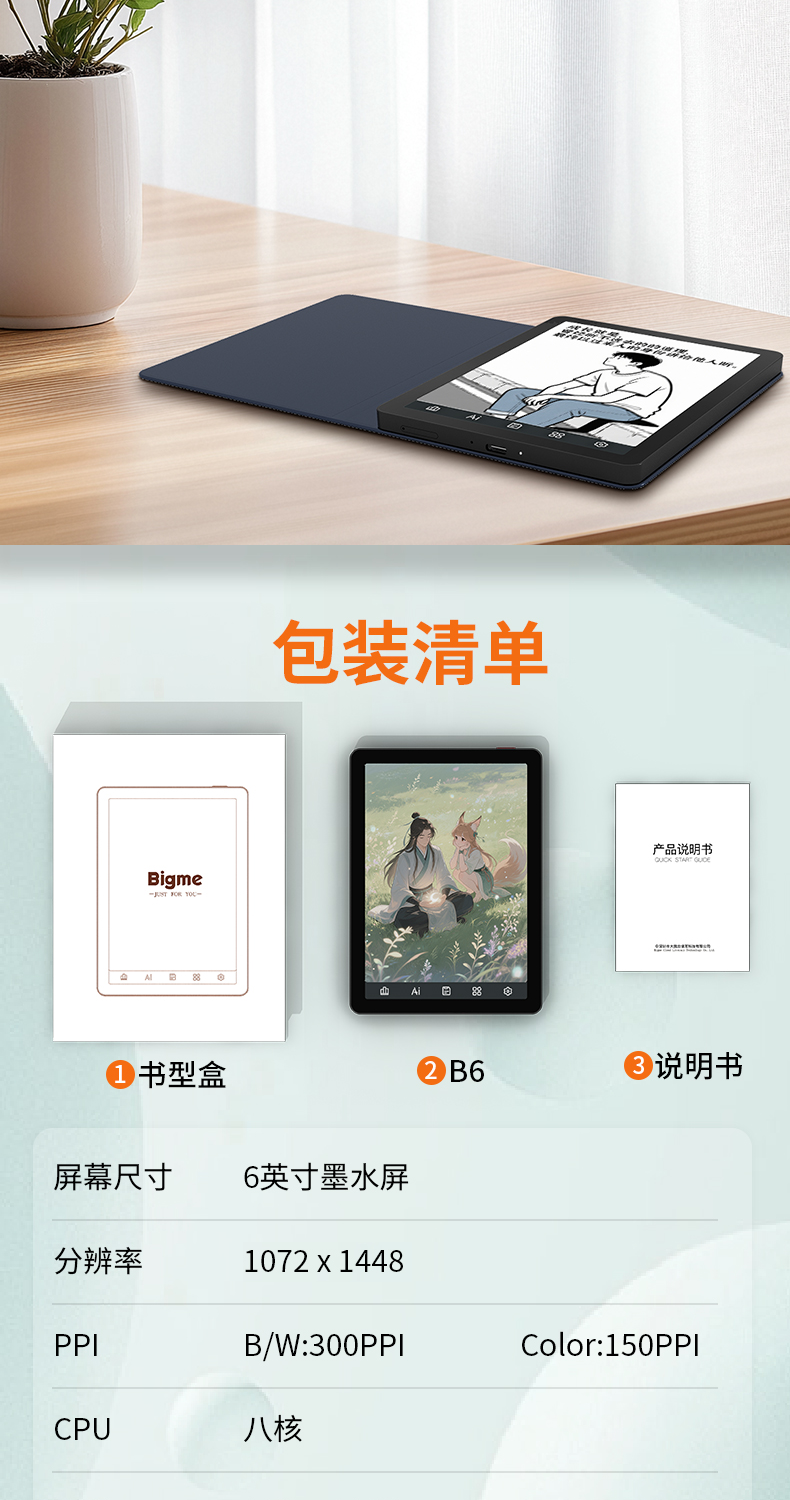 [Flagship New Product B6] Bigme 6inch Octa-Core Color E-Ink Screen E-Book Reader 300Ppi High-Definition E-Ink Screen Display Reader